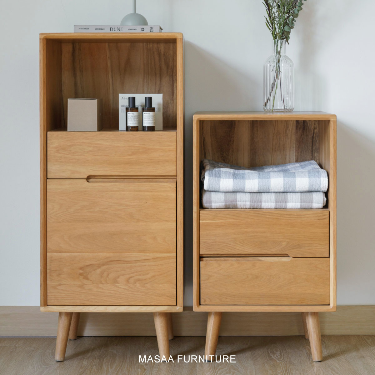 เซ็ตตู้ข้างโชว์ไม้โอ๊ค ทรงเตี้ยและทรงสูง Sato