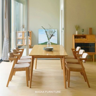 ชุดโต๊ะกินข้าวไม้โอ๊คสี่เหลี่ยม ขา V-Shape และเก้าอี้ทานข้าว2ตัว
