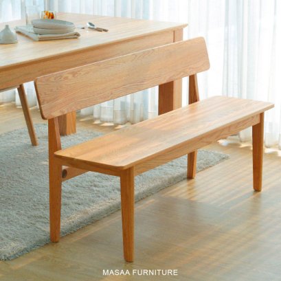 ม้านั่งยาวไม้โอ๊ค มีพนักพิง