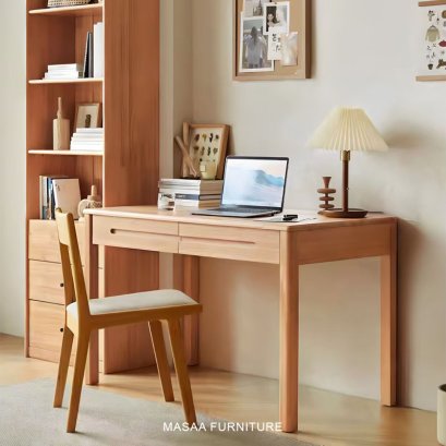โต๊ะทำงานไม้โอ๊ค ขาตรงมน 1.0 และ 1.2 เมตร