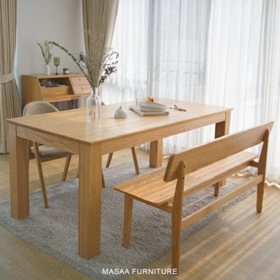 ชุดโต๊ะกินข้าวไม้โอ๊ค Big Leg พร้อมม้านั่งยาวมีพนักพิง และเก้าอี้ไม้2ตัว