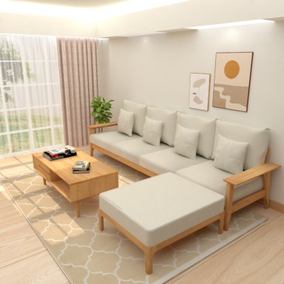 โซฟาผ้าตัวแอล 4 ที่นั่ง Japan Lake - PASAYA Fabric