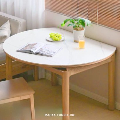 โต๊ะกินข้าวพับได้ไม้โอ๊ค ท็อปหินสังเคราะห์ (กางออกได้2ฝั่ง)