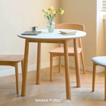 โต๊ะกินข้าวไม้โอ๊คกลม(เฉพาะโต๊ะ) ท็อปหินสังเคราะห์ 0.8 0.9 1.1 เมตร ขากลม
