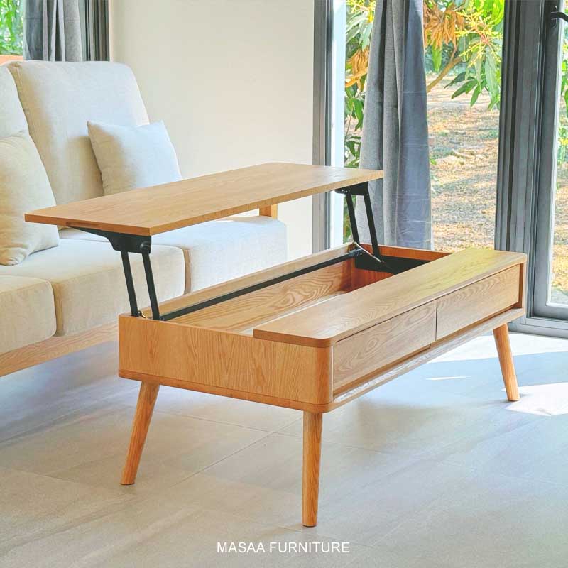 โต๊ะกลางไม้โอ๊คปรับยกได้ Banoffee 1.0 เมตร