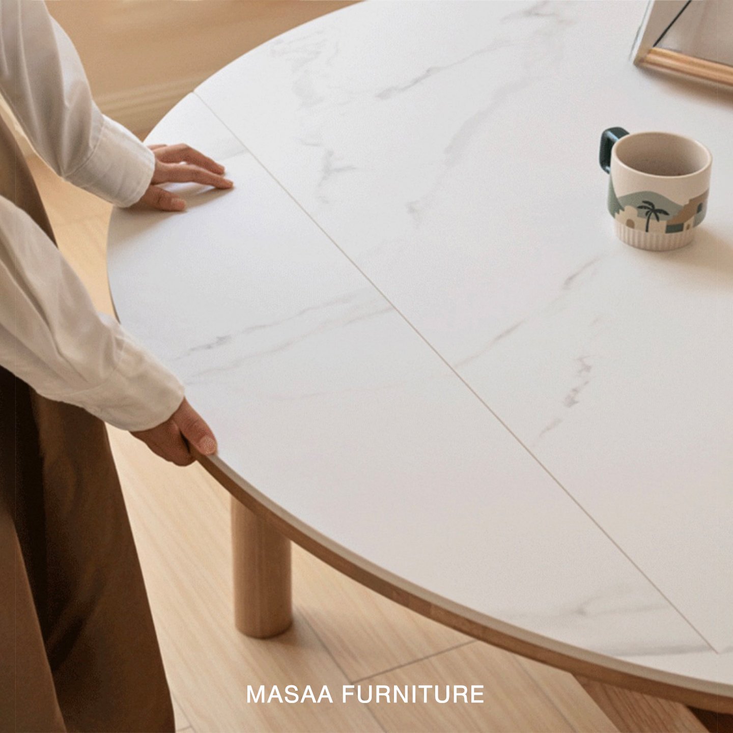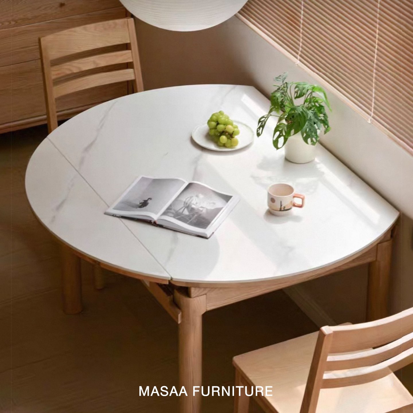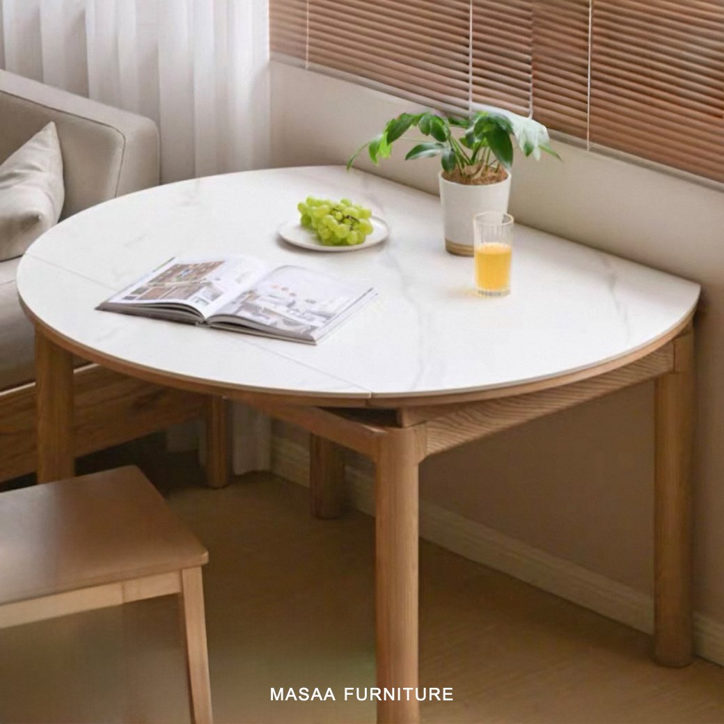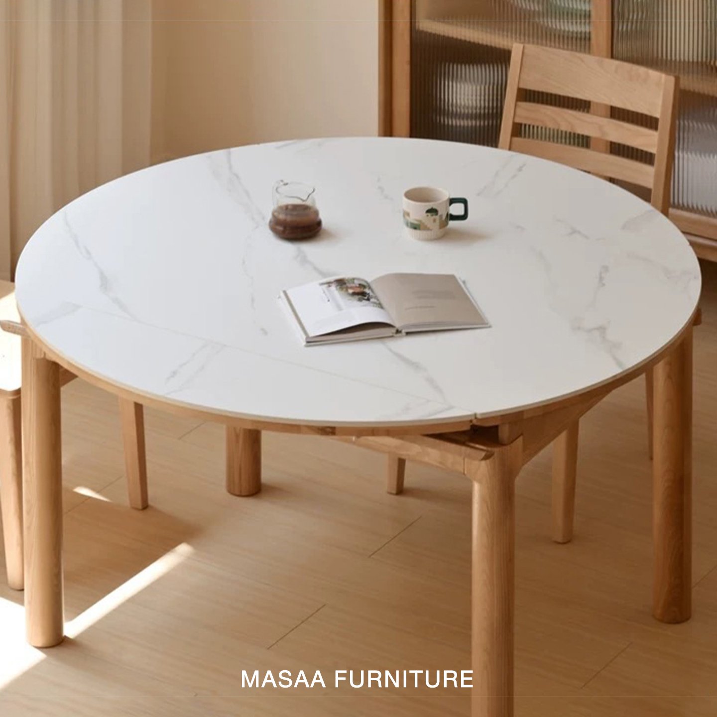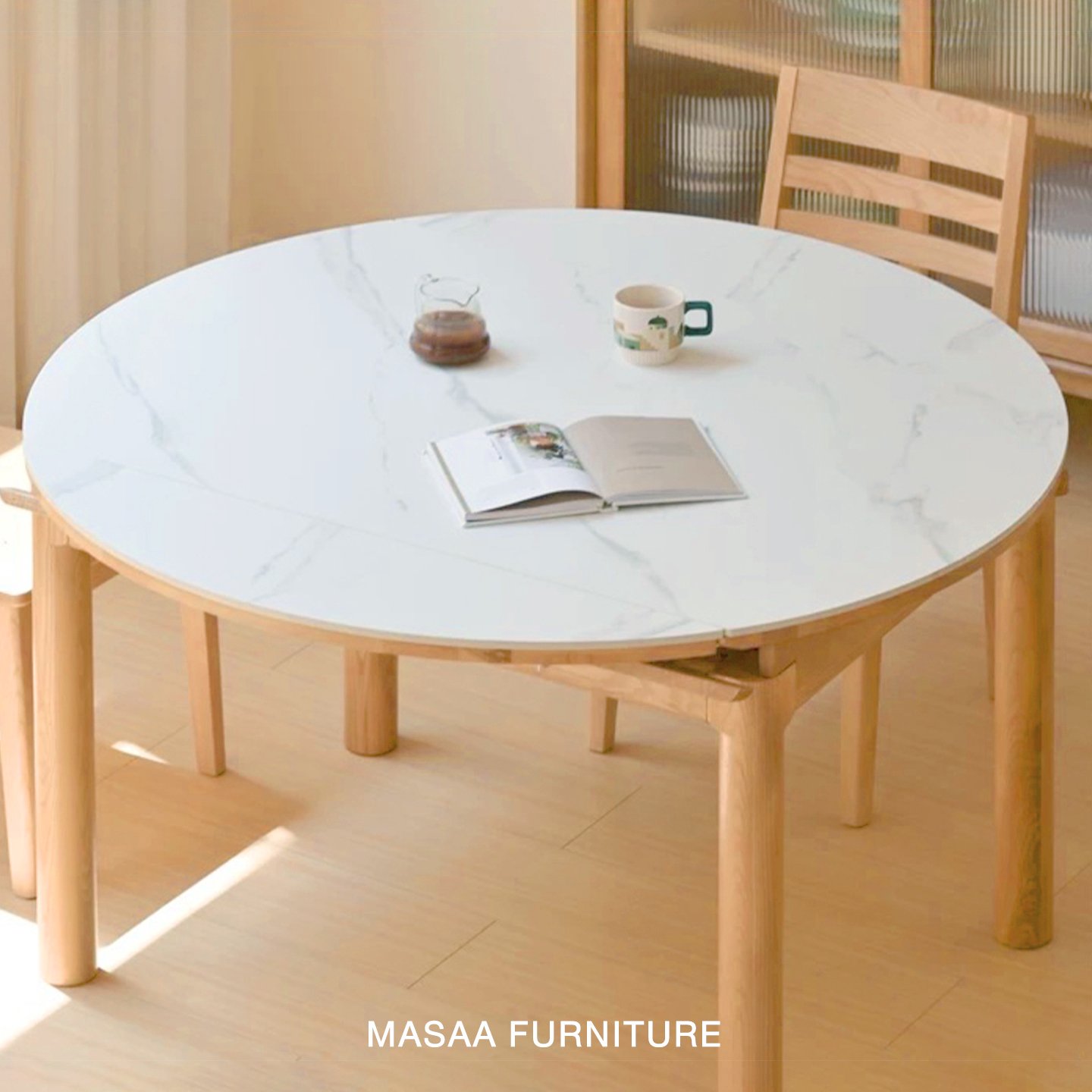 โต๊ะกินข้าวไม้โอ๊คกลม พับเป็นเหลี่ยมได้ ท็อปหินสังเคราะห์ Sintered Stone แข็งแรง ทนทาน ทนรอยขีดข่วน ดีไซน์โมเดิร์น เป็น โต๊ะกินข้าวทรงกลม โต๊ะกินข้าวกลมท็อปหิน โต๊ะกินข้าวไม้ โต๊ะท็อปหิน โต๊ะกินข้าวไม้ท็อปหิน โต๊ะกินข้าวไม้โอ๊คท็อปหิน โต๊ะกินข้าวท็อปหิน โต๊ะท็อปหินเทียม โต๊ะท็อปหินสังเคราะห์ ที่เข้าได้กับทุกสไตล์การแต่งบ้าน