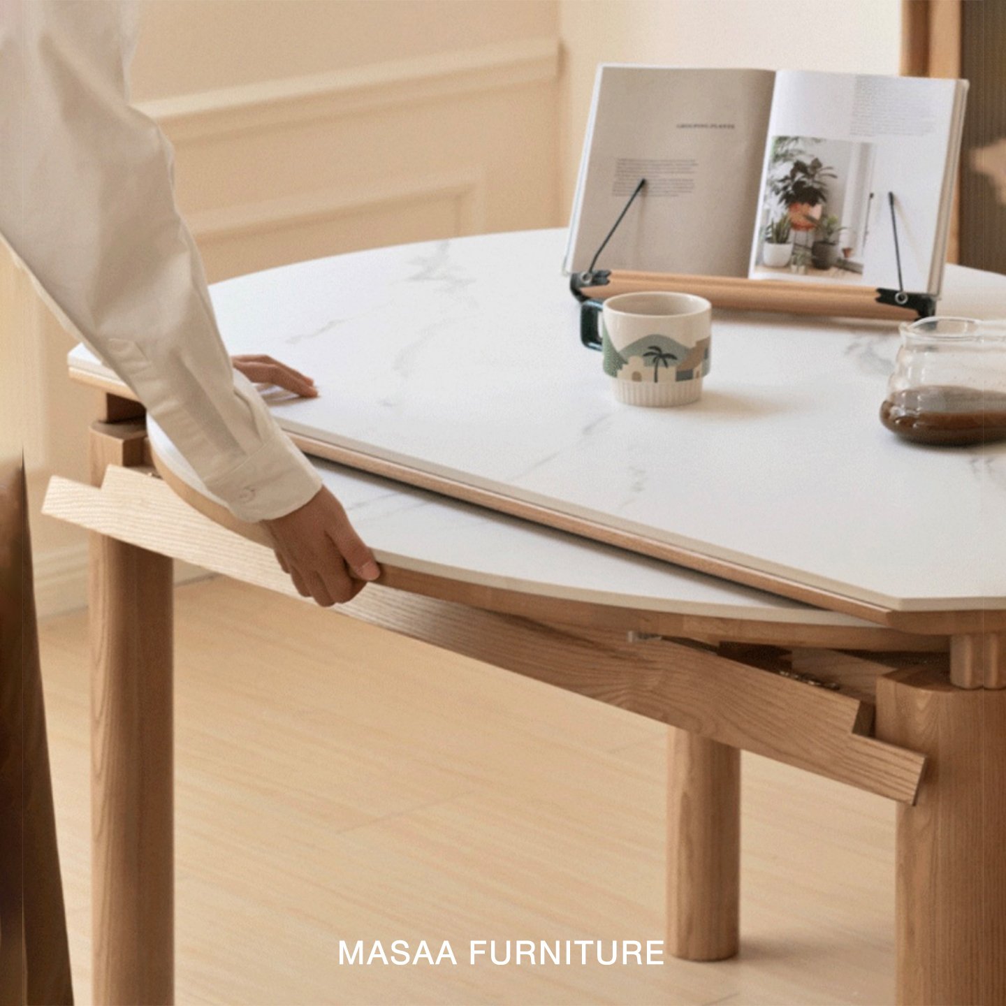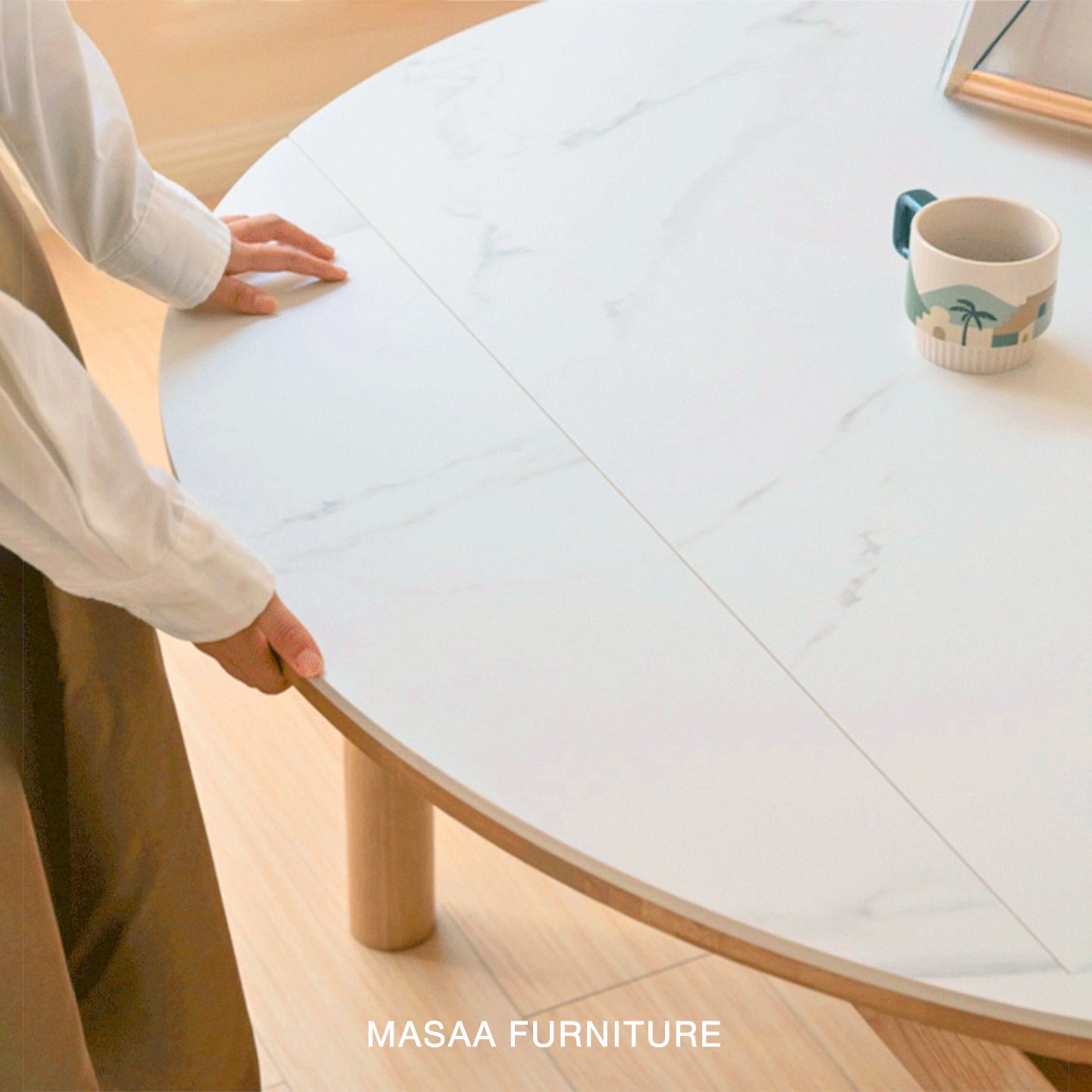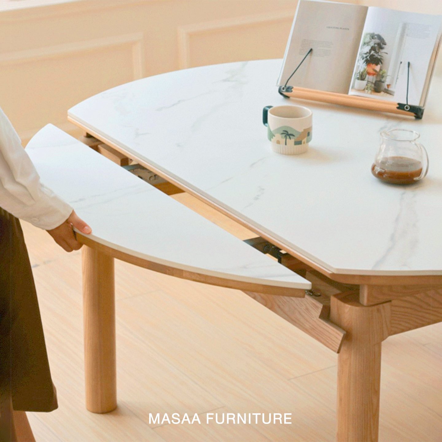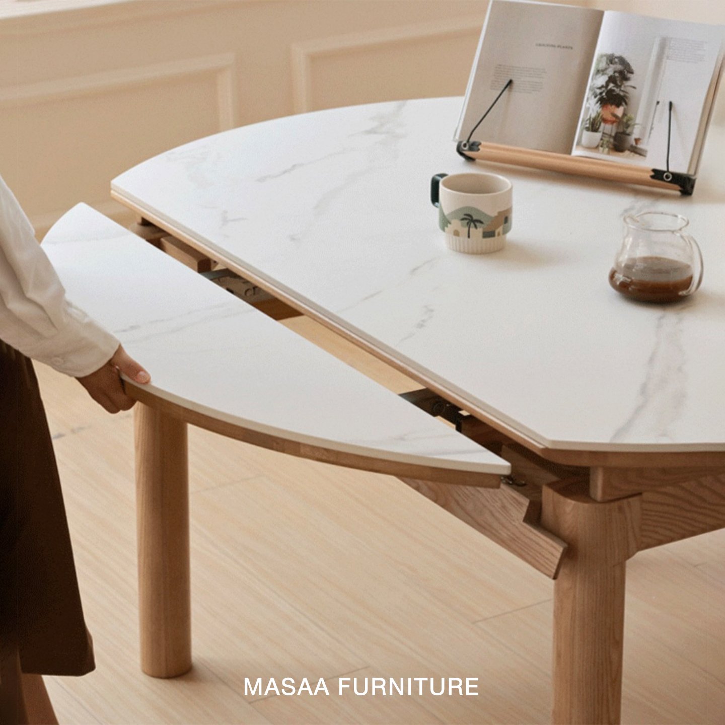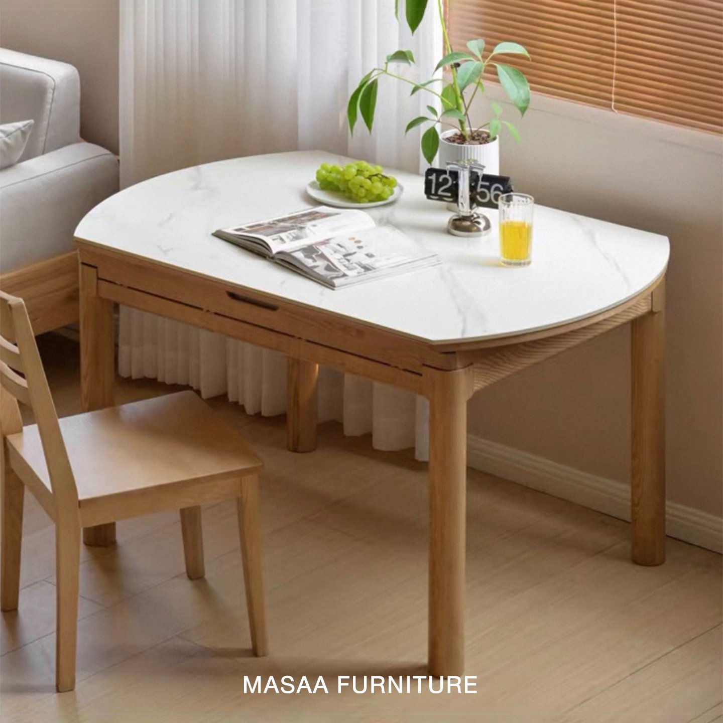 โต๊ะกินข้าวไม้โอ๊คกลม พับเป็นเหลี่ยมได้ ท็อปหินสังเคราะห์ Sintered Stone แข็งแรง ทนทาน ทนรอยขีดข่วน ดีไซน์โมเดิร์น เป็น โต๊ะกินข้าวทรงกลม โต๊ะกินข้าวกลมท็อปหิน โต๊ะกินข้าวไม้ โต๊ะท็อปหิน โต๊ะกินข้าวไม้ท็อปหิน โต๊ะกินข้าวไม้โอ๊คท็อปหิน โต๊ะกินข้าวท็อปหิน โต๊ะท็อปหินเทียม โต๊ะท็อปหินสังเคราะห์ ที่เข้าได้กับทุกสไตล์การแต่งบ้าน