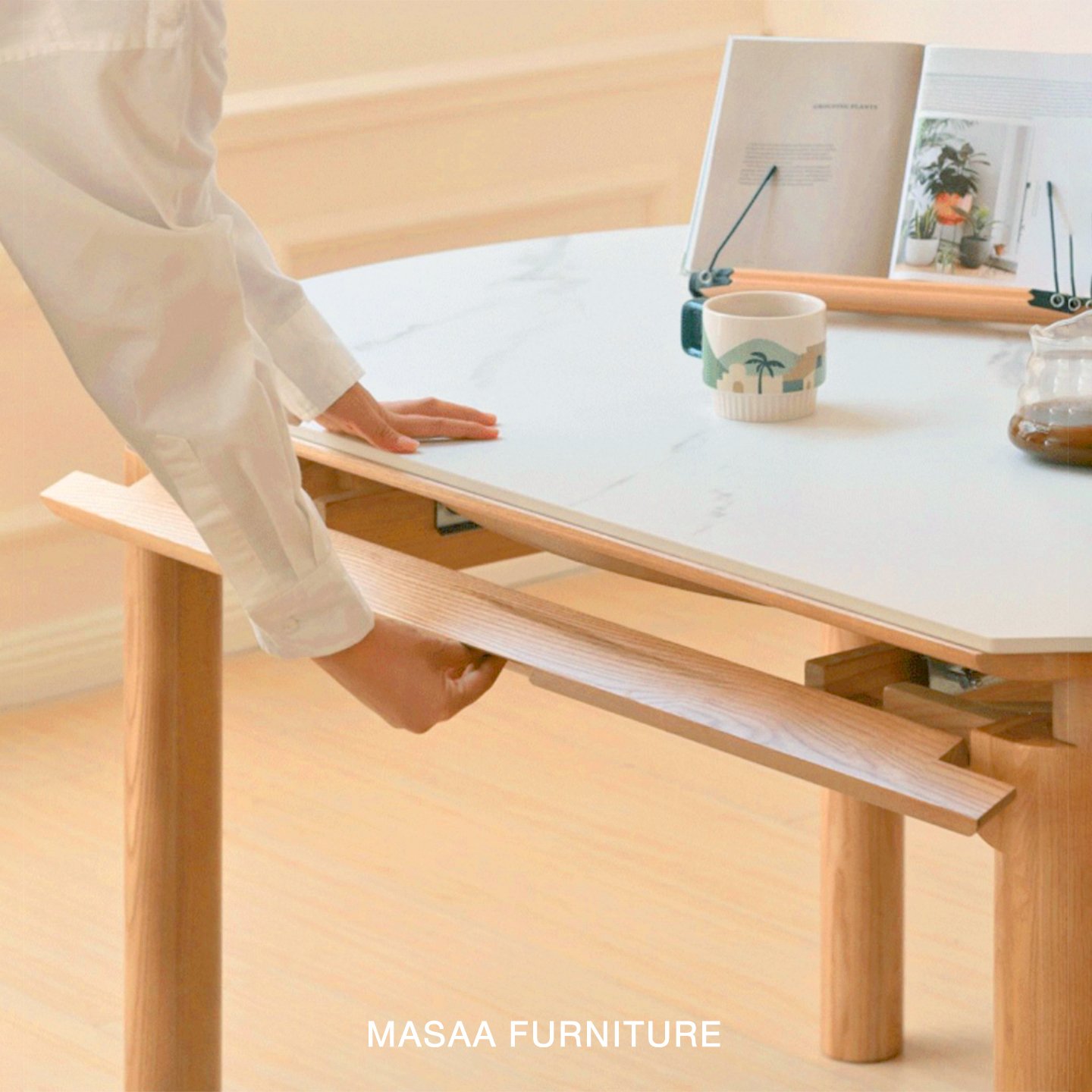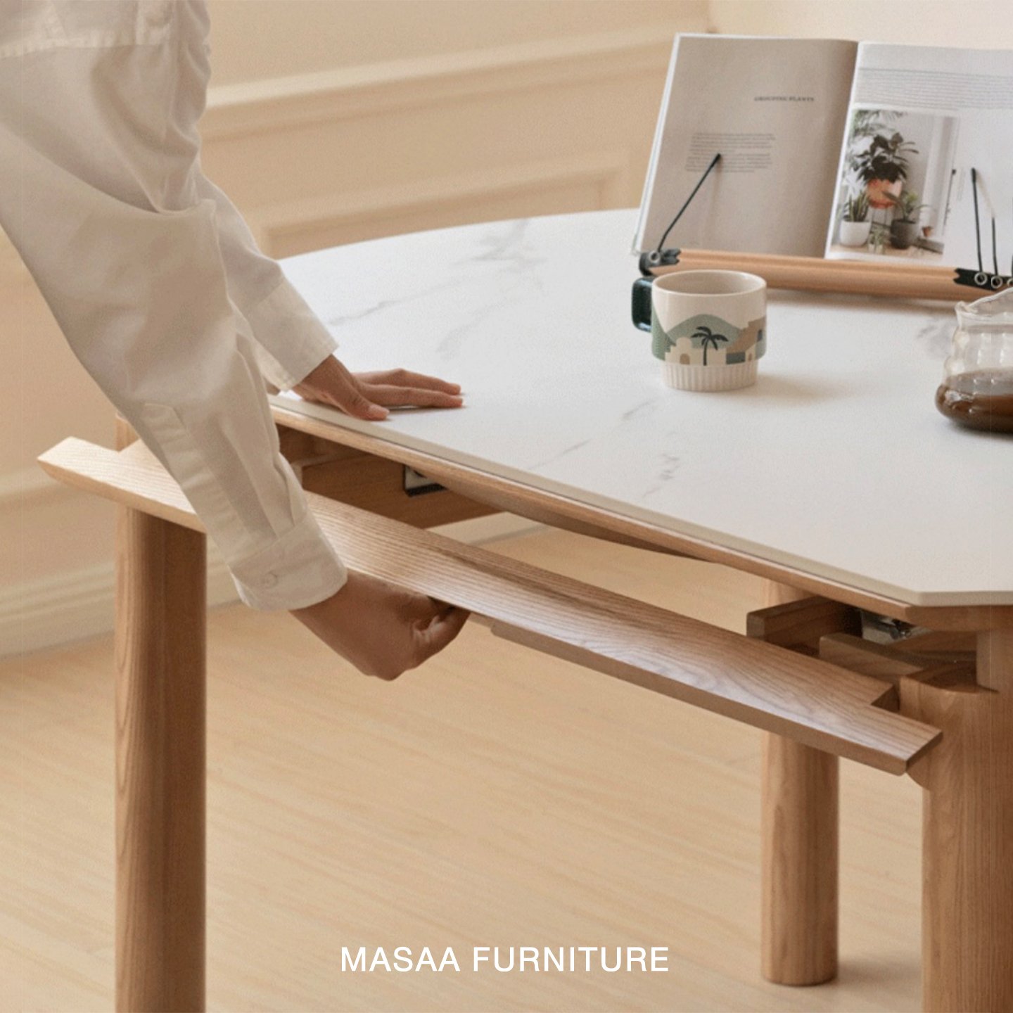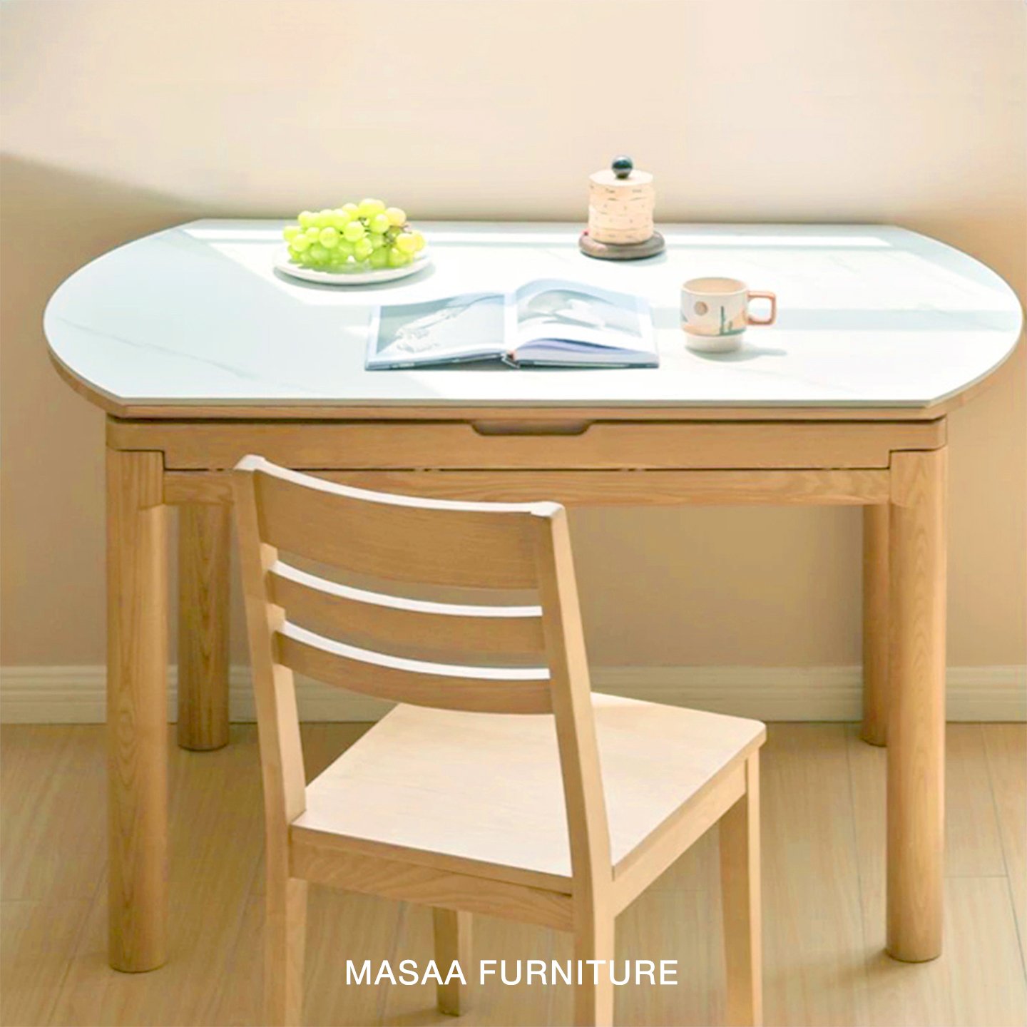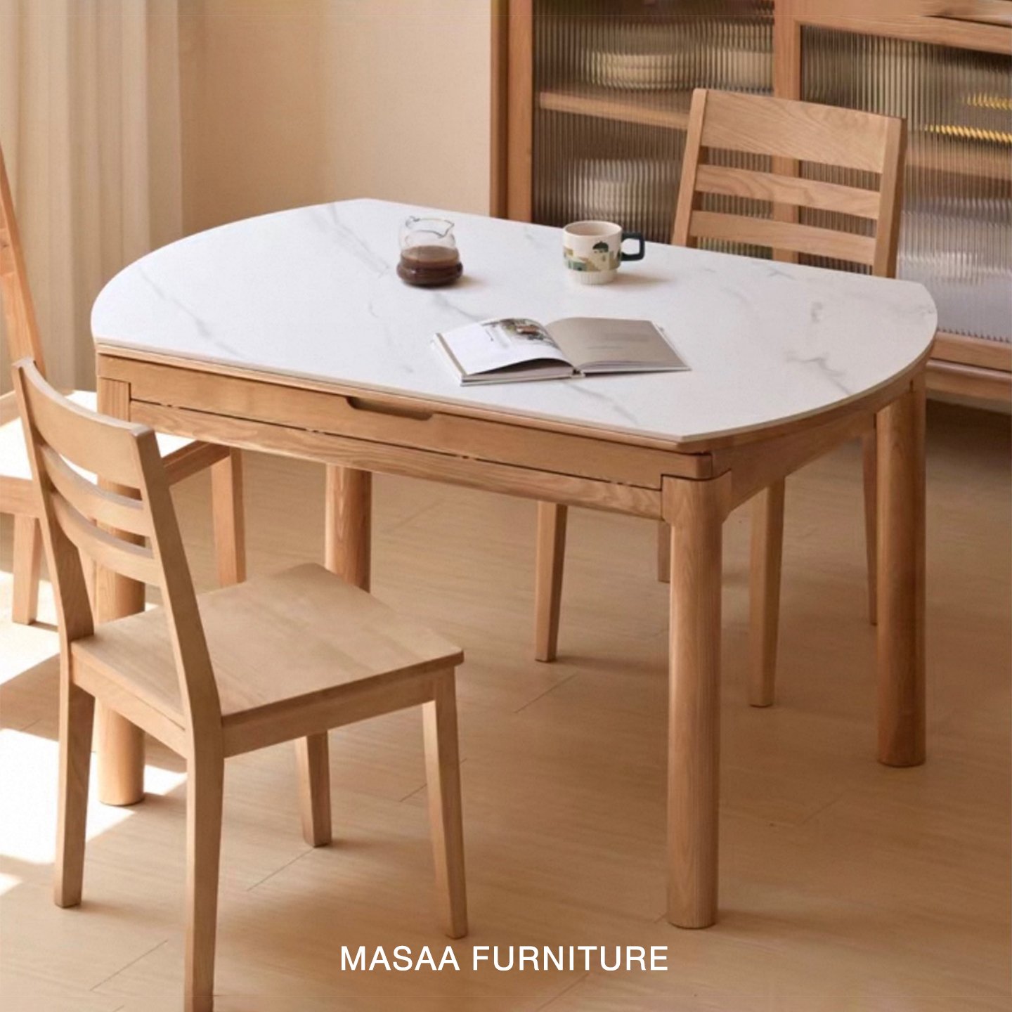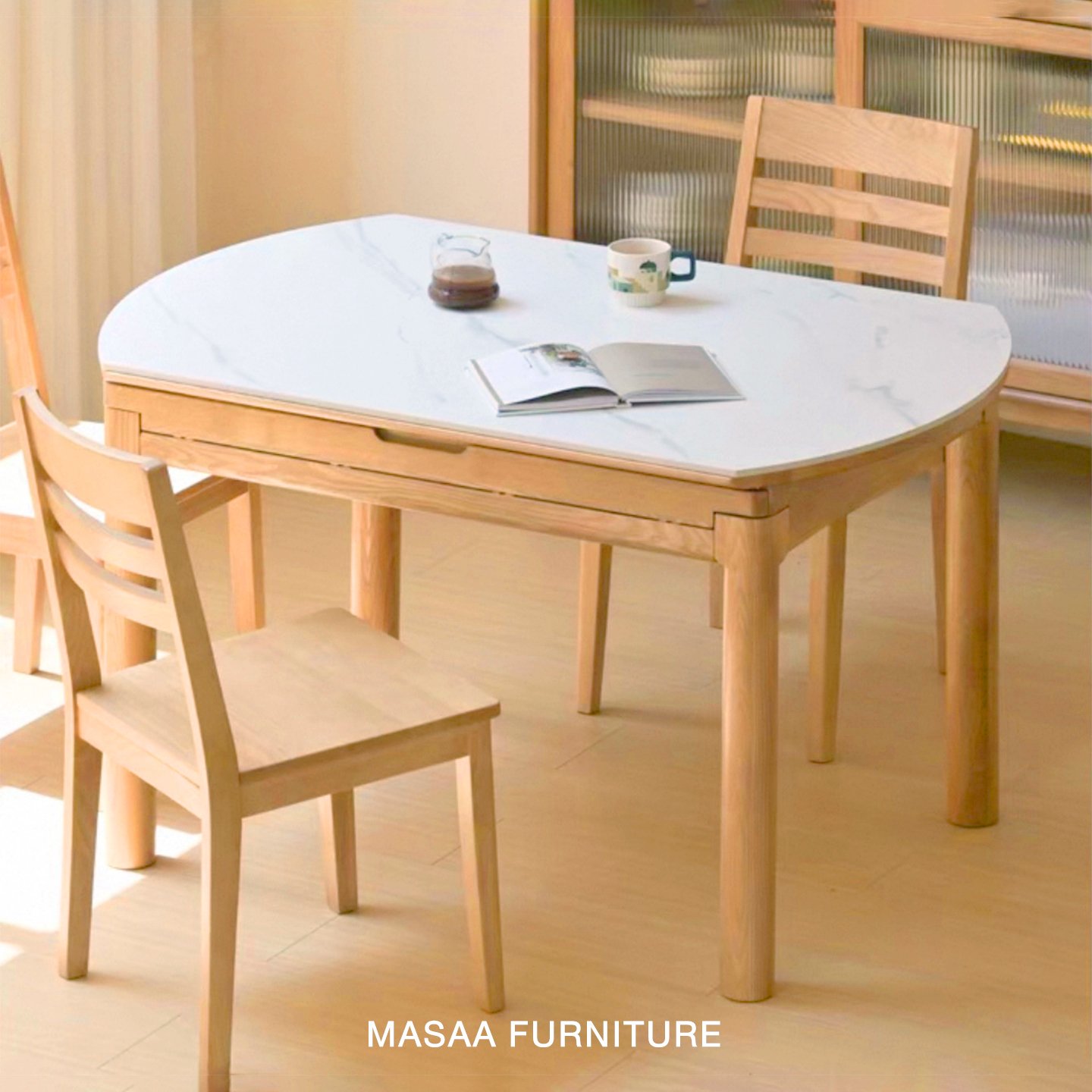 โต๊ะกินข้าวไม้โอ๊คกลม พับเป็นเหลี่ยมได้ ท็อปหินสังเคราะห์ Sintered Stone แข็งแรง ทนทาน ทนรอยขีดข่วน ดีไซน์โมเดิร์น เป็น โต๊ะกินข้าวทรงกลม โต๊ะกินข้าวกลมท็อปหิน โต๊ะกินข้าวไม้ โต๊ะท็อปหิน โต๊ะกินข้าวไม้ท็อปหิน โต๊ะกินข้าวไม้โอ๊คท็อปหิน โต๊ะกินข้าวท็อปหิน โต๊ะท็อปหินเทียม โต๊ะท็อปหินสังเคราะห์ ที่เข้าได้กับทุกสไตล์การแต่งบ้าน