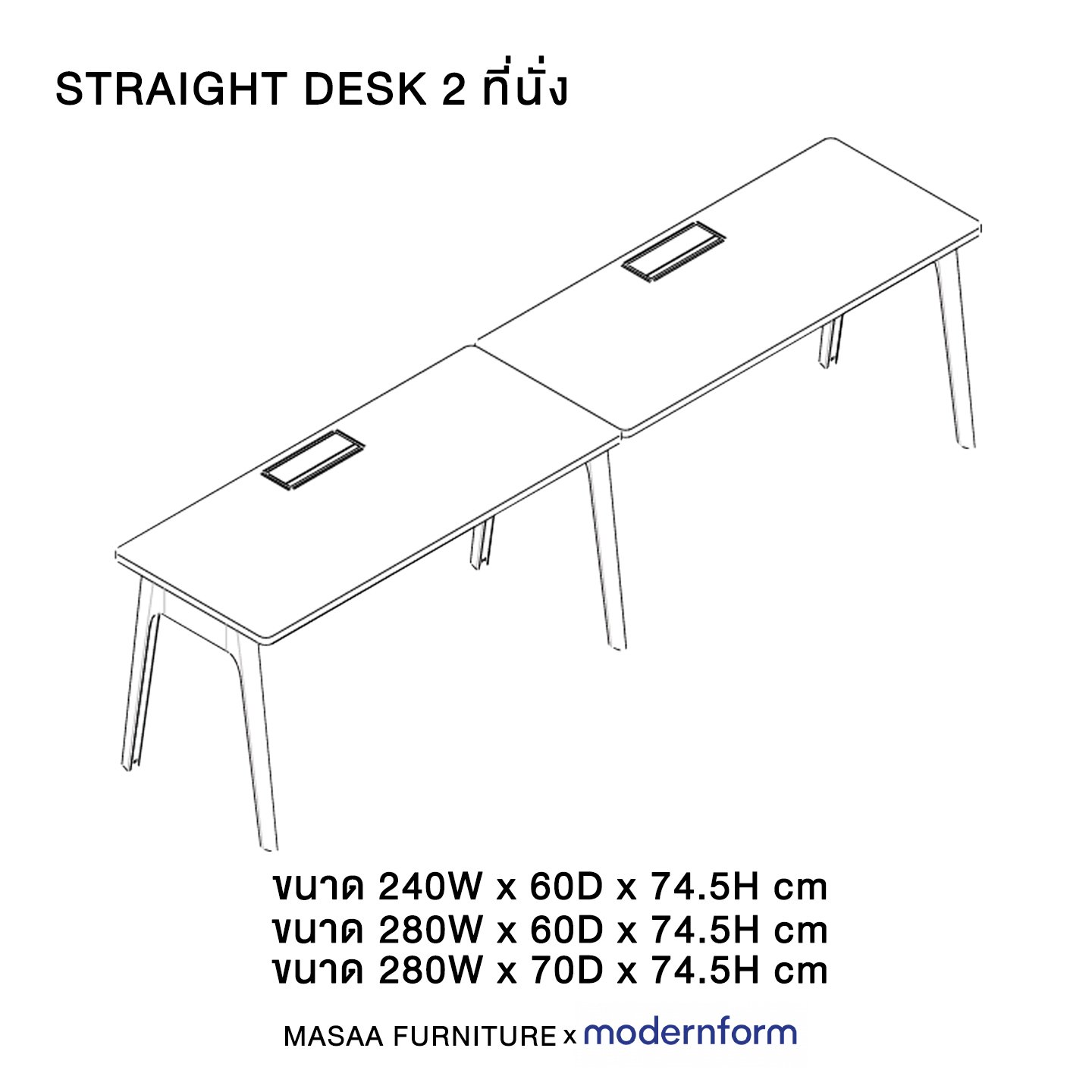 2.80 เมตร: 280x60x74.5 ซม.