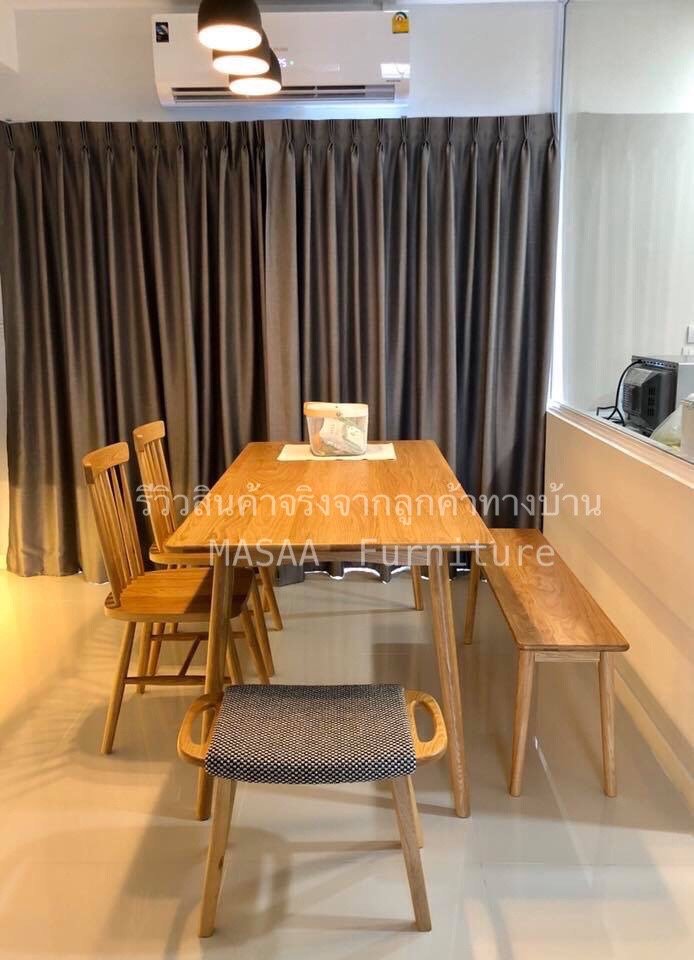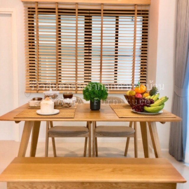 <ชุดโต๊ะกินข้าวไม้โอ๊ค ขาU-Shape DT006 ขนาด 1.6 เมตร พร้อมเก้าอี้ไม้ Okinawa DC004 และม้านั่งยาวไม้โอ๊ค LB002 ขนาด 1.10 เมตร>
