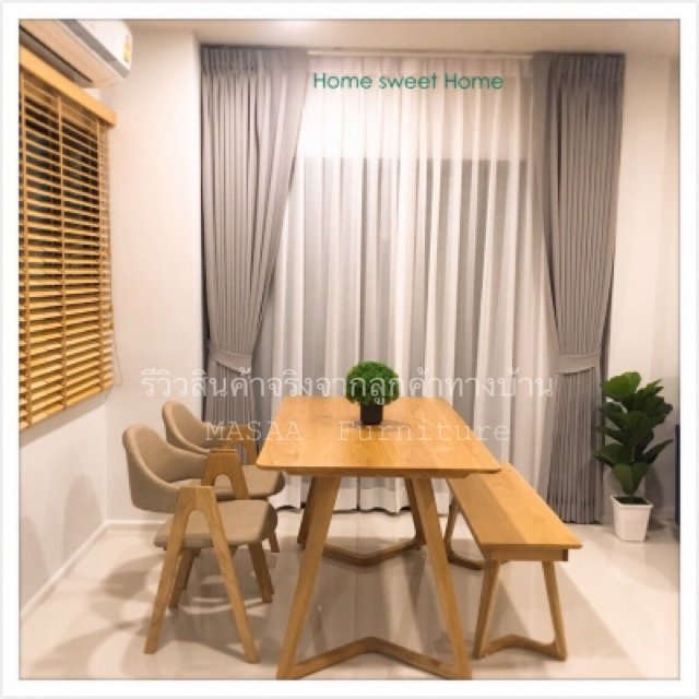 <ชุดโต๊ะกินข้าวไม้โอ๊ค ขาแบน DT004 1.8 เมตร พร้อมเก้าอี้ไม้โอ๊ค DC009 รุ่น Sunshine>
