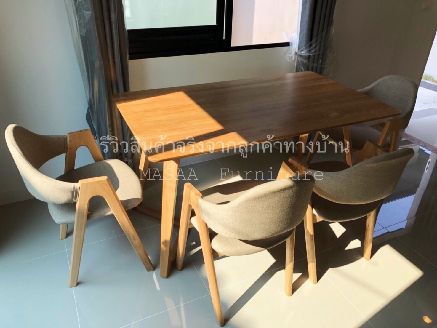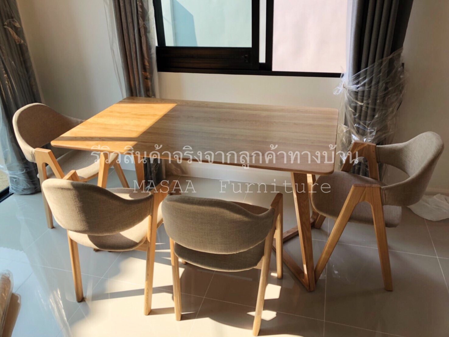 <โต๊ะกินข้าวไม้โอ๊ค ขาV-Shape 1.4 เมตร DT001>