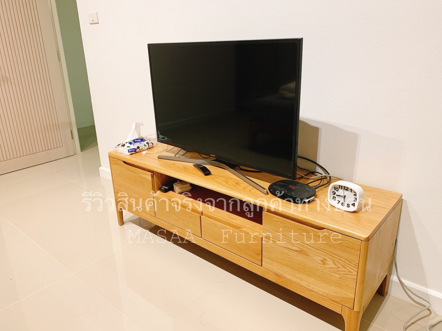 <ชั้นวางทีวีไม้โอ๊ค TVC001 รุ่น Three Summers 1.5 เมตร>