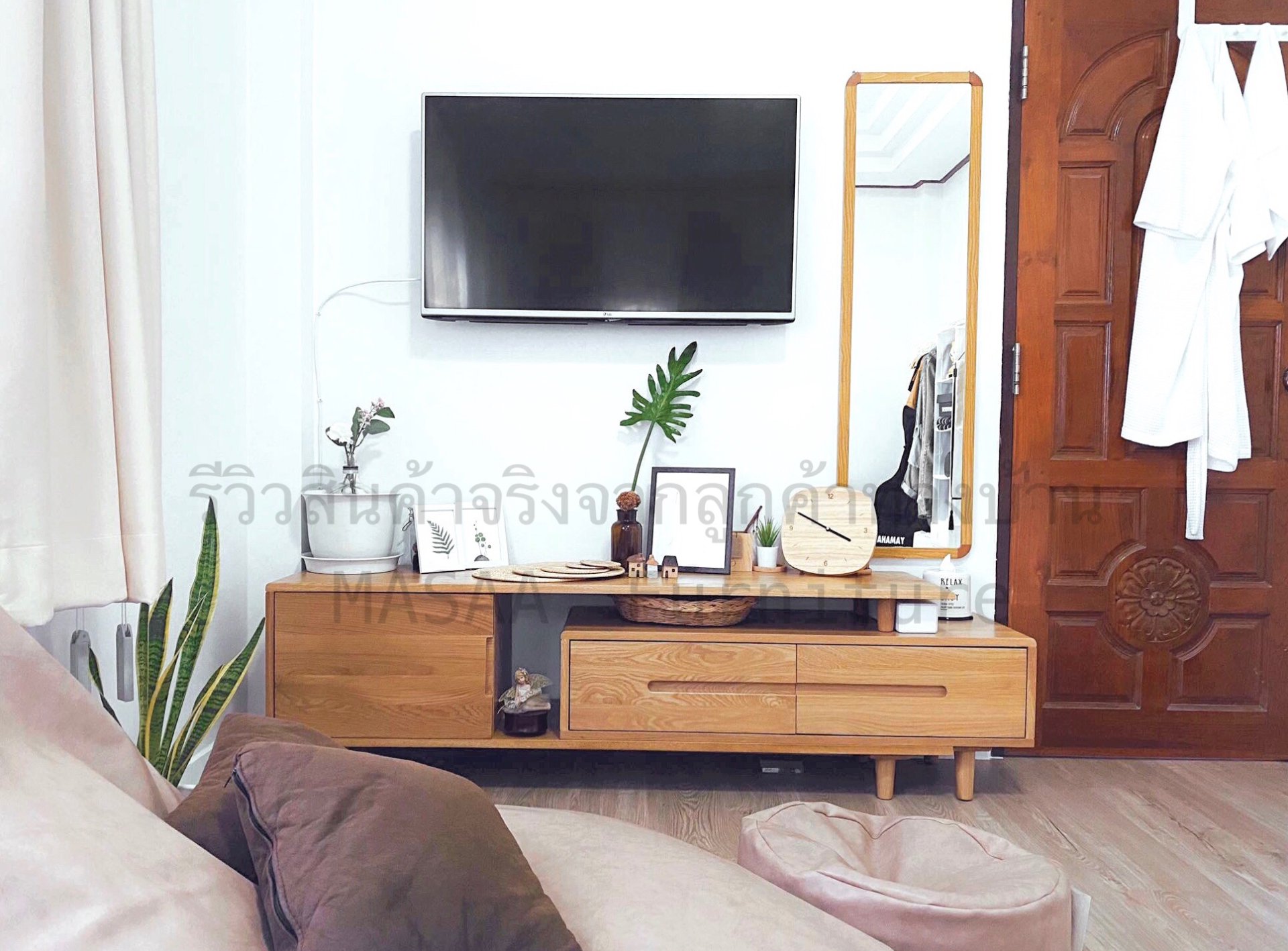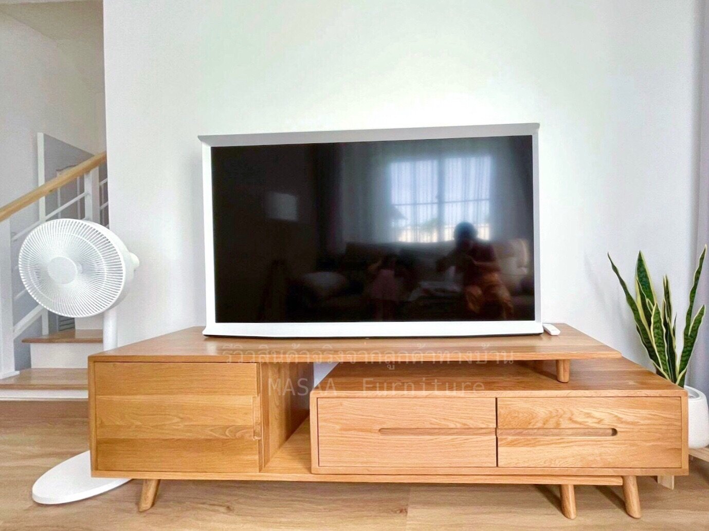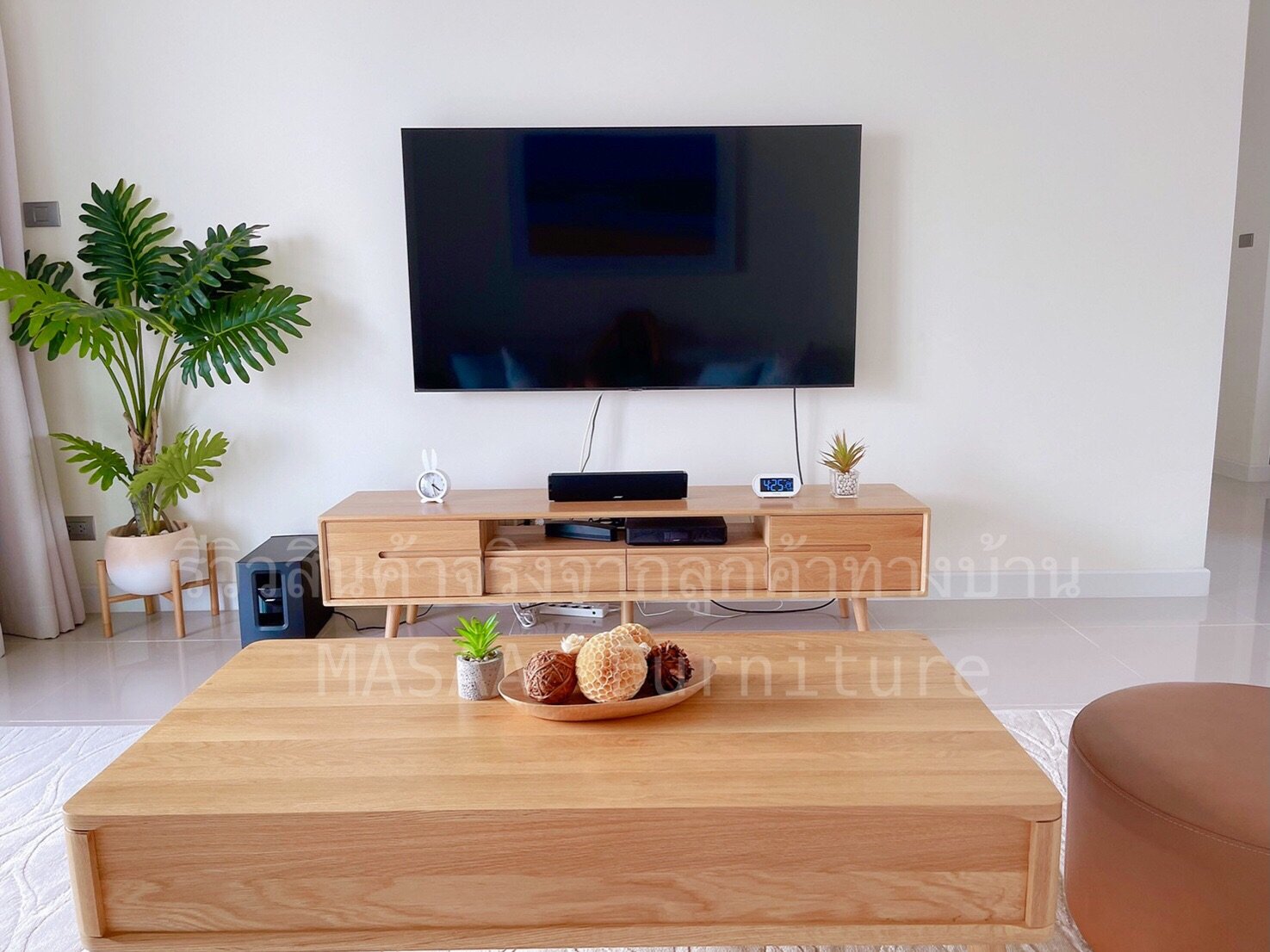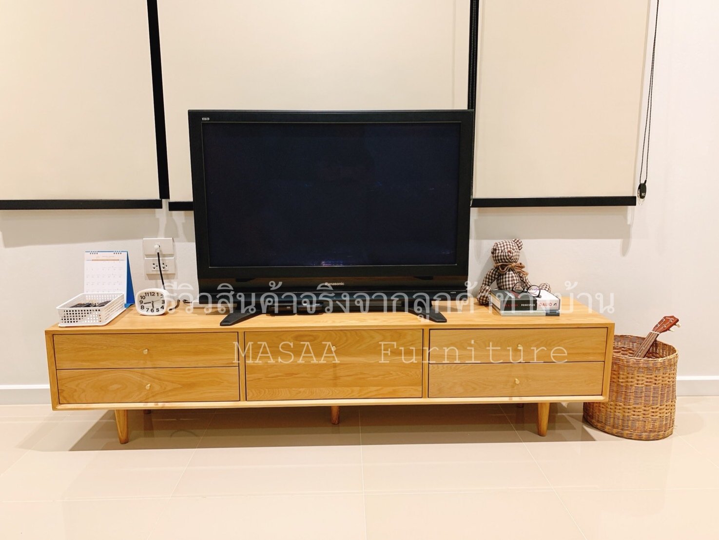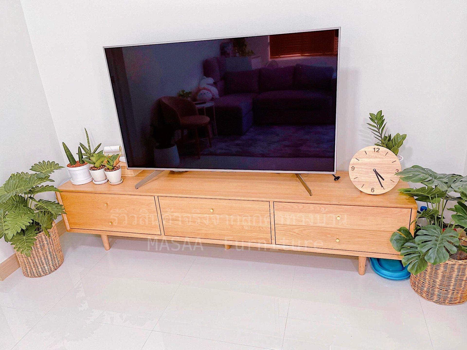 <ชั้นวางทีวีไม้โอ๊ค TVC001 รุ่น Three Summers 2.0 เมตร>