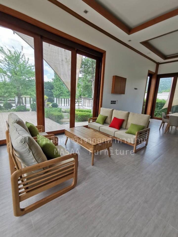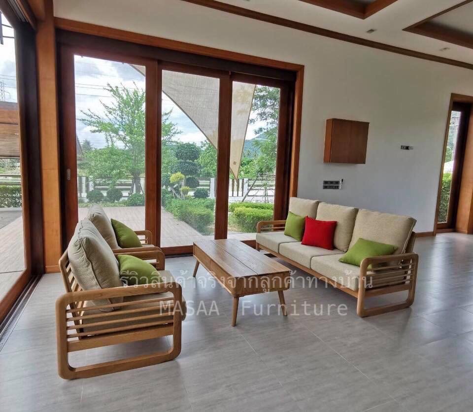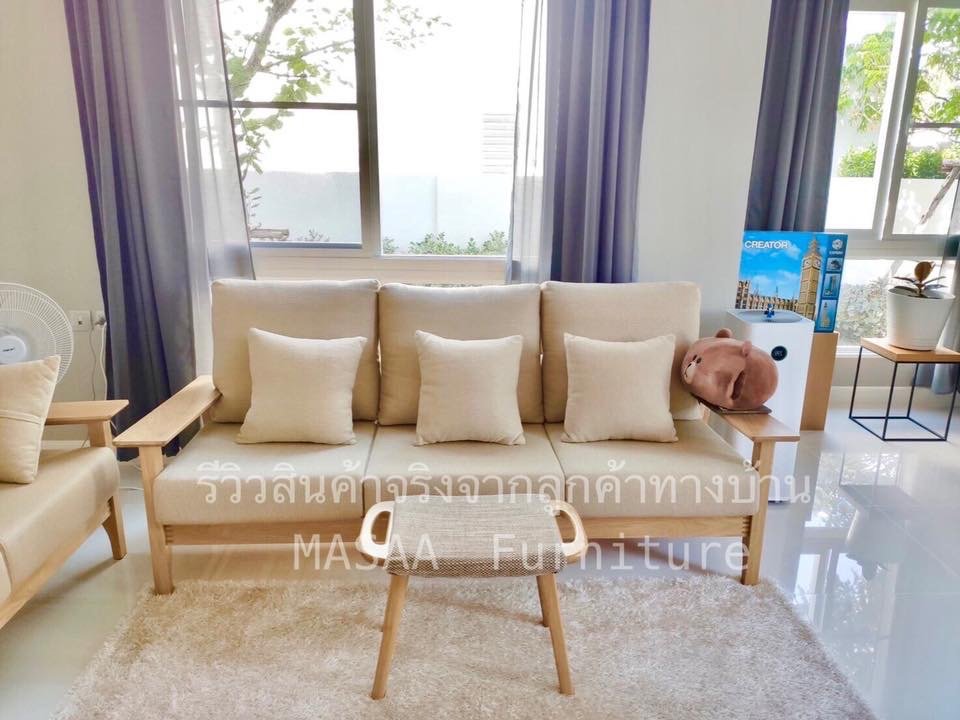 <ชุดโซฟาไม้โอ๊ค Japan Lake SF2003 Minimal SET ขนาด 1 ที่นั่ง และ 3 ที่นั่ง>