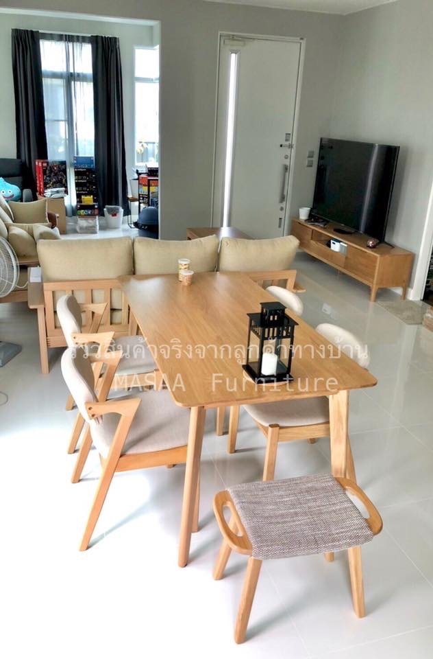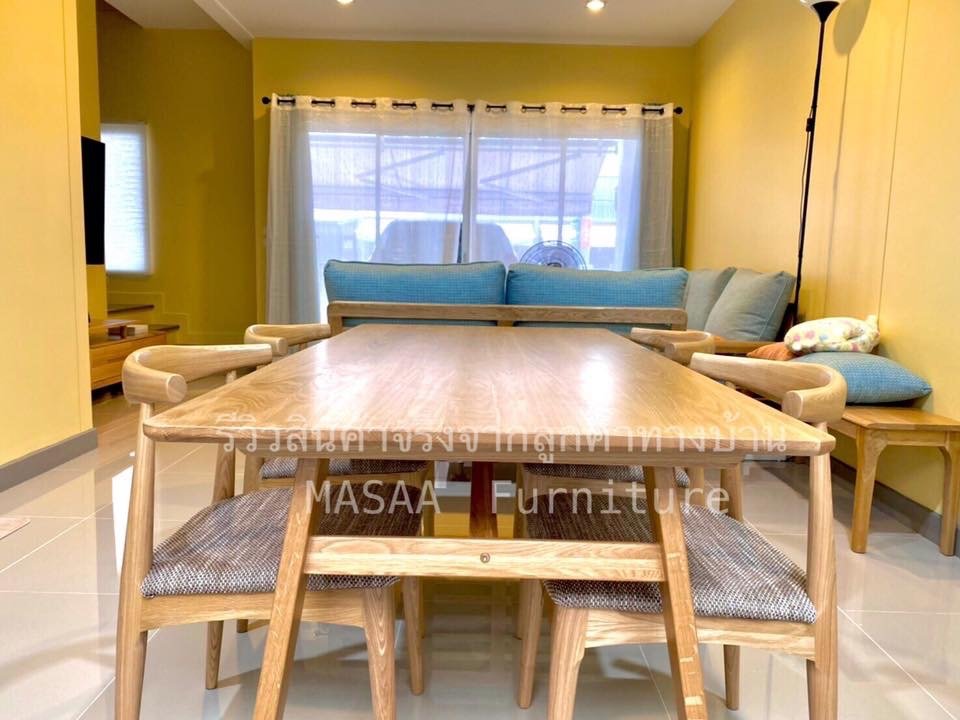 <ชุดโต๊ะกินข้าวไม้โอ๊ค ขาแบน DT004 ขนาด 1.6 เมตร พร้อมเก้าอี้ไม้โอ๊ค Zen DC005>