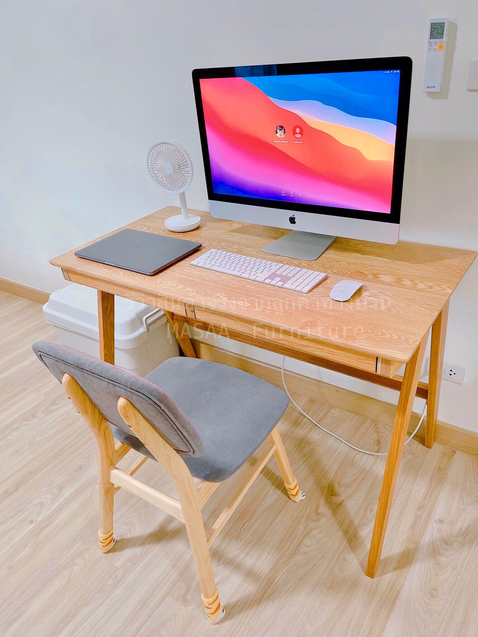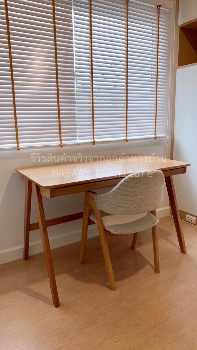<ชุดโต๊ะทำงานไม้โอ๊ค ขาเอียง ขนาด 1.2 เมตรพร้อมเก้าอี้ A-Style DC001>