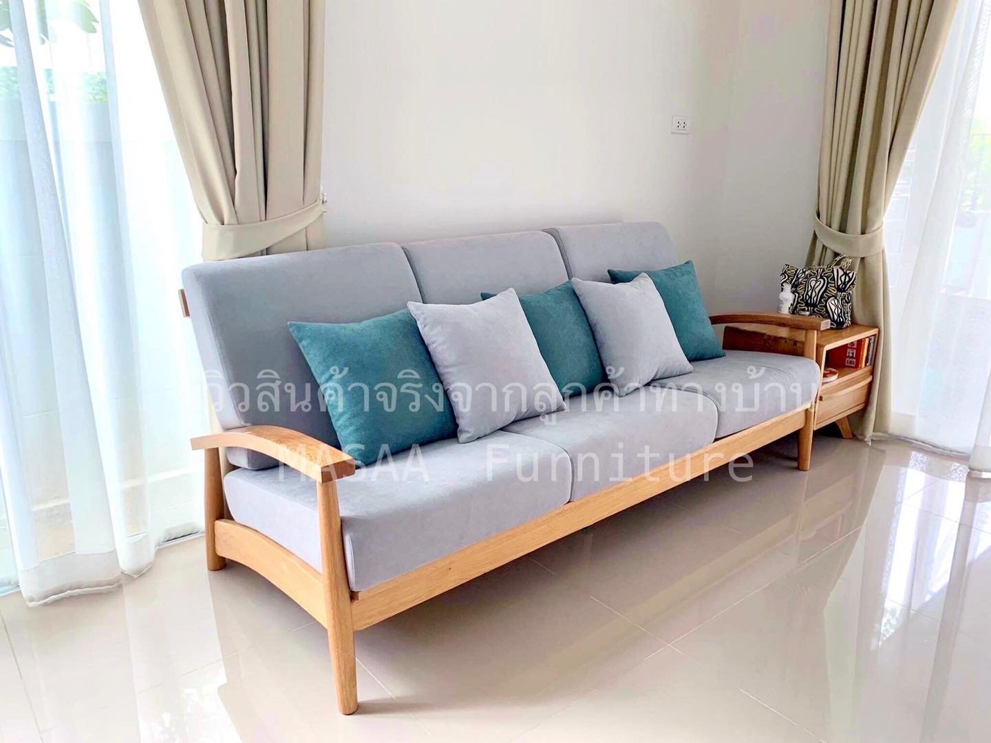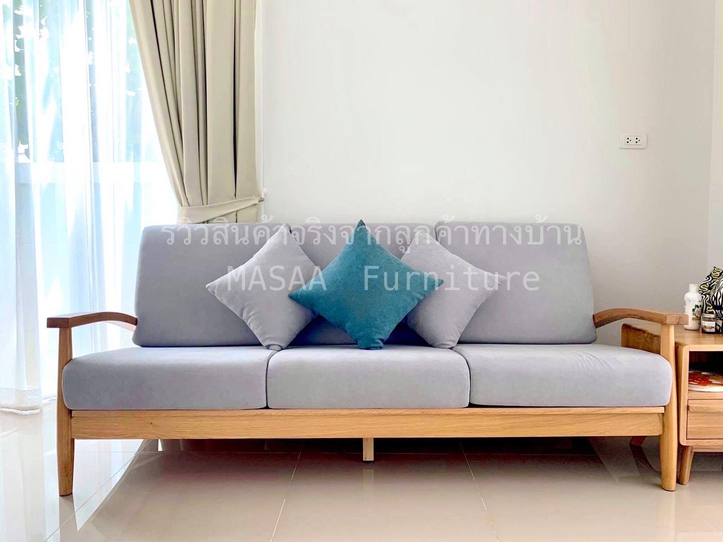 <โซฟาไม้โอ๊ค Japan Lake SF2003 ขนาด 3 ที่นั่ง>
