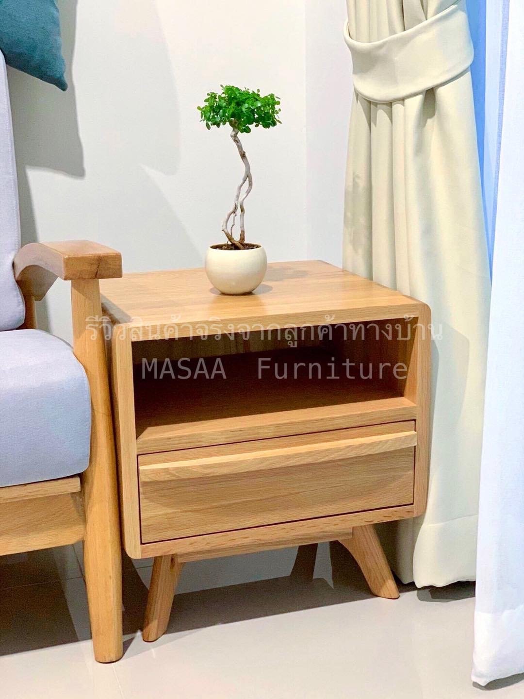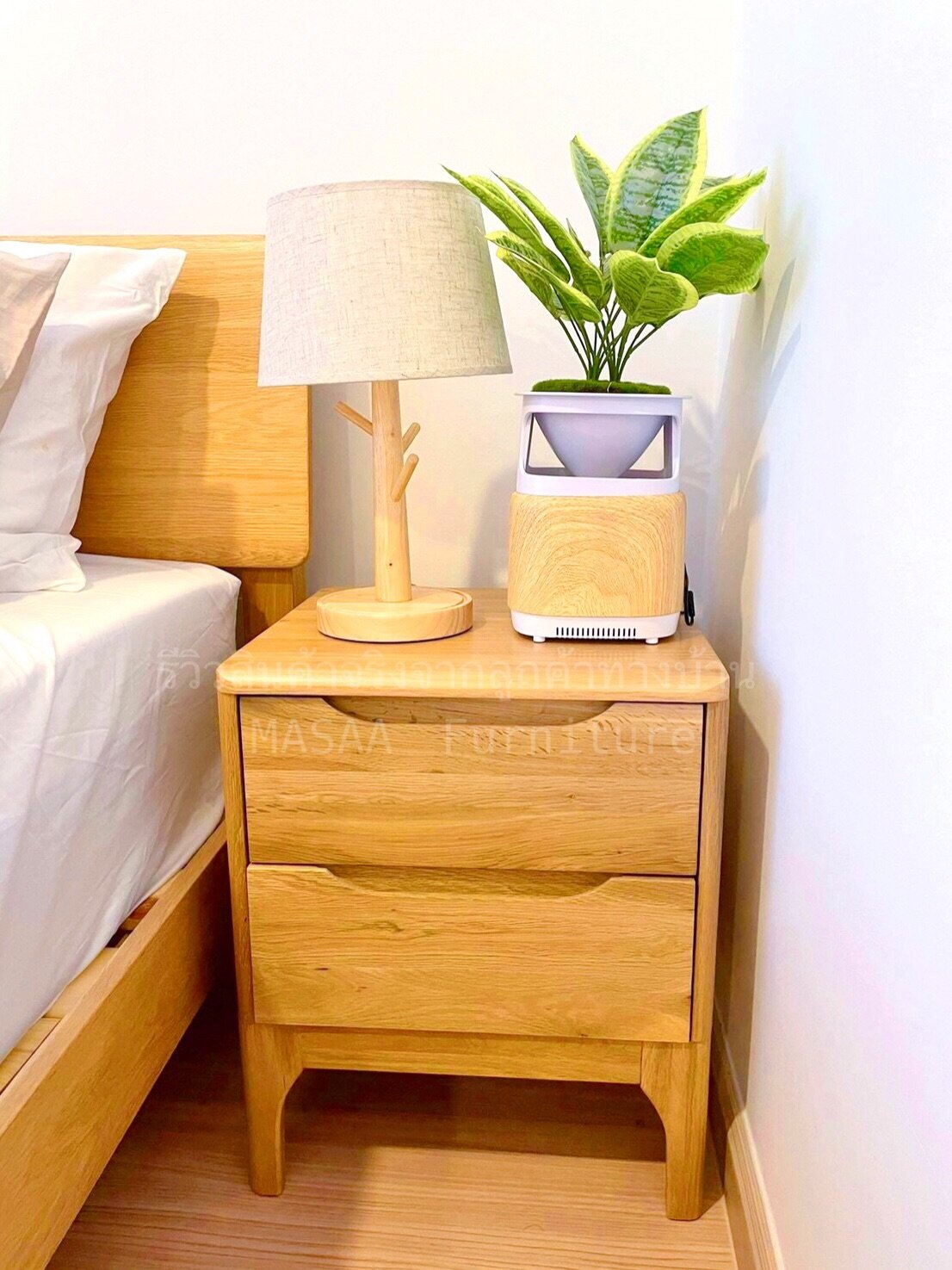 <ตู้ข้างเตียงไม้โอ๊ค BT002 รุ่น Hana>