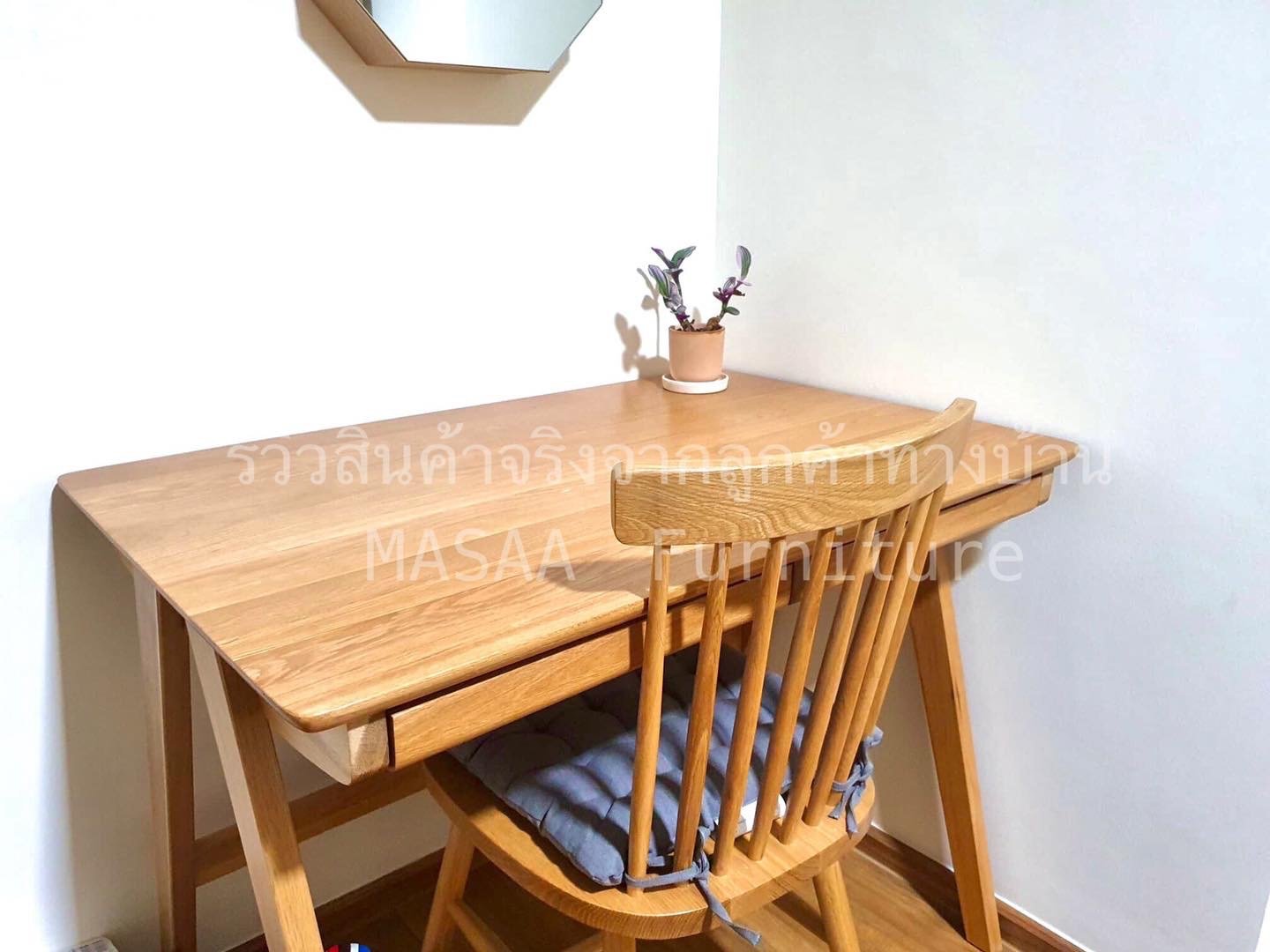 <ชุดโต๊ะทำงานไม้โอ๊ค ขาเอียง ขนาด 1 เมตร SD001 พร้อมเก้าอี้ไม้ Himeji DC008>