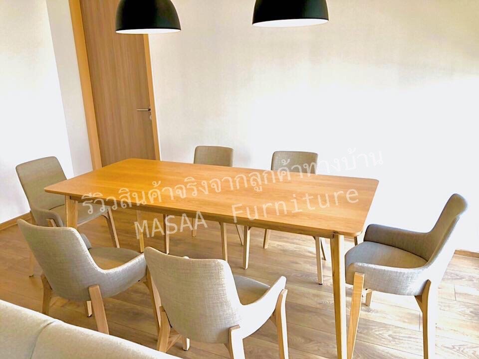 <ชุดโต๊ะกินข้าวไม้โอ๊ค ขาตรง ขนาด 1.8 เมตร พร้อมเก้าอี้ไม้โอ๊ค Zen DC005 x 6 ตัว>