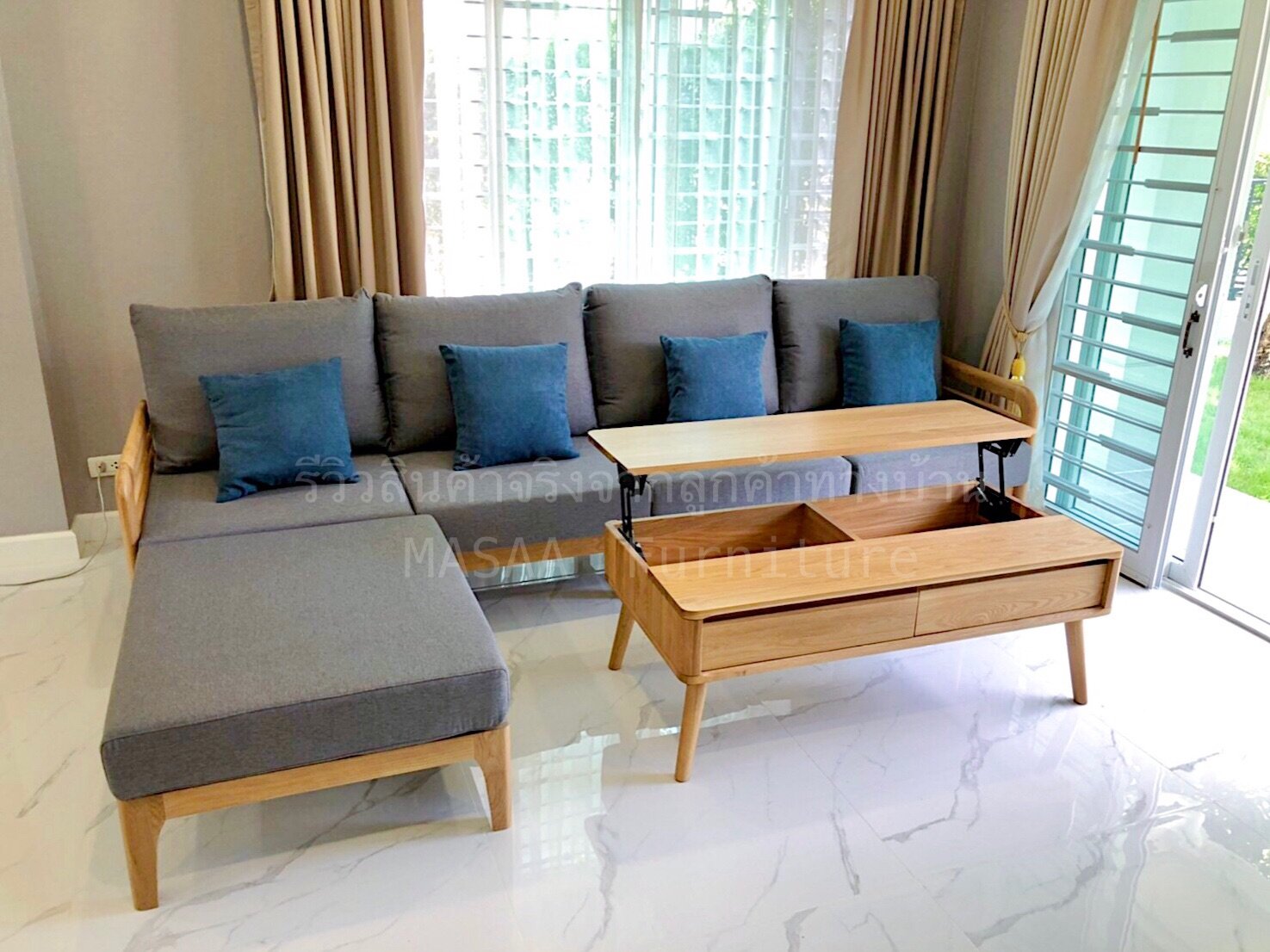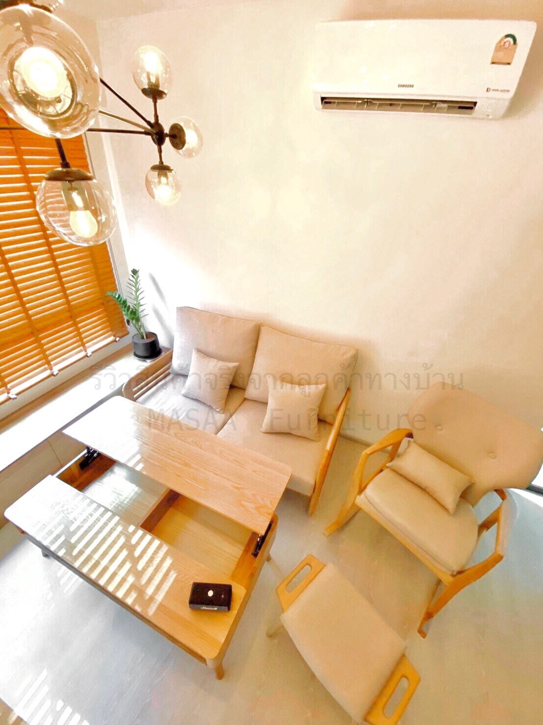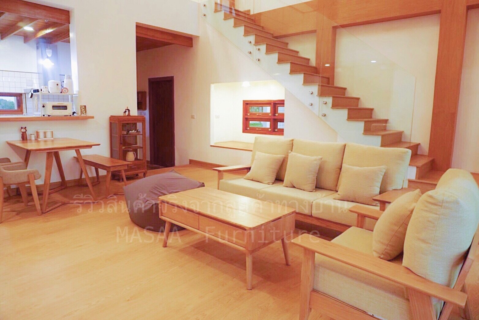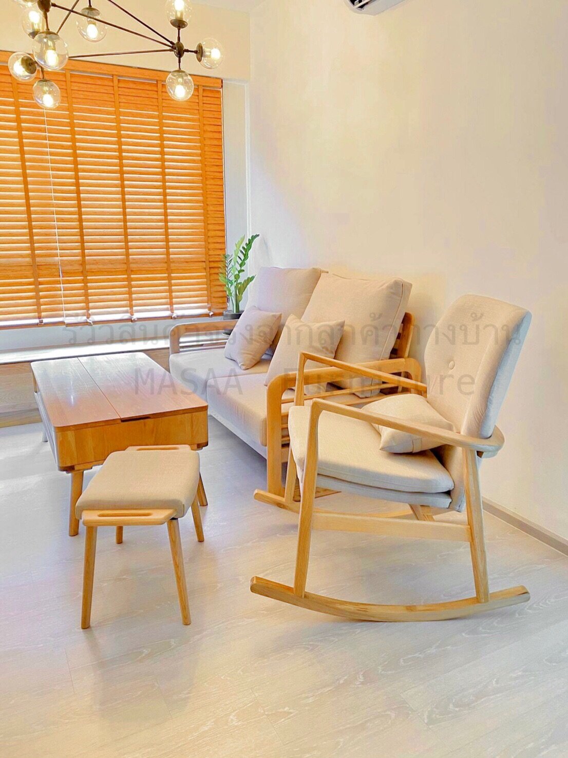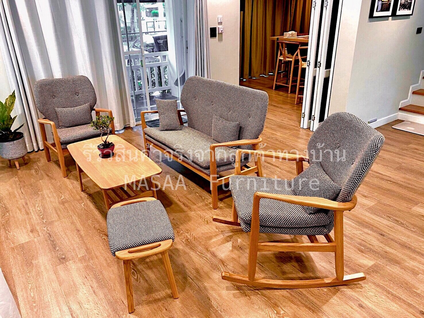 <ชุดโซฟาไม้โอ๊ค Fuji Moon SF1001 Minimal SET 1+2 ที่นั่ง>