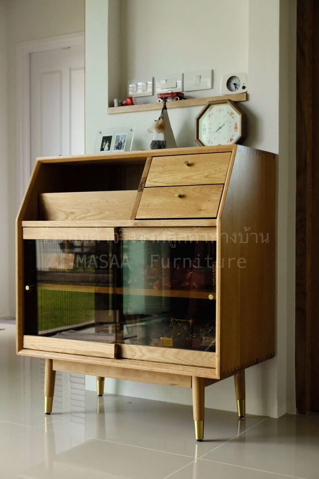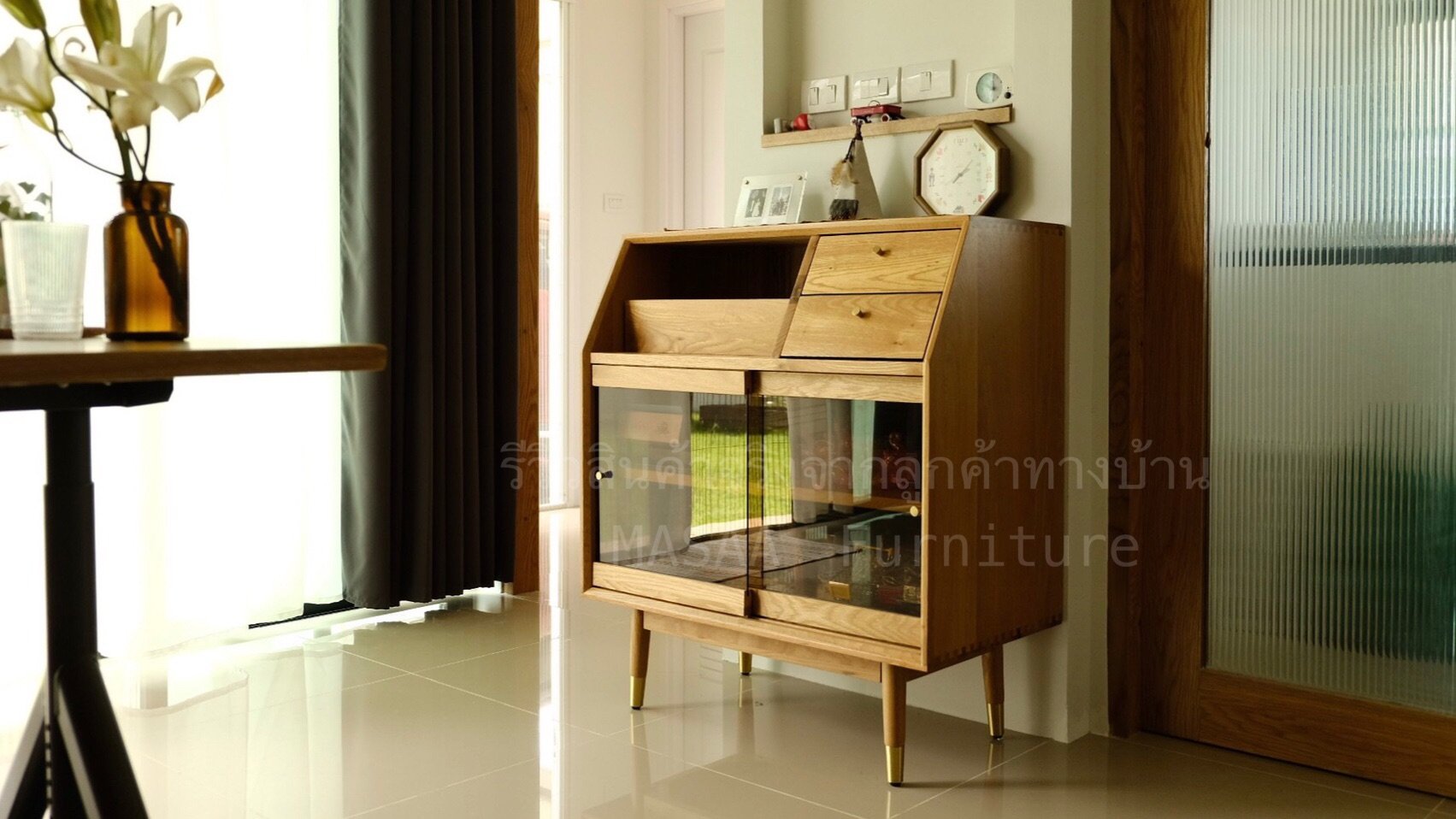 <ตู้ข้างโชว์ไม้โอ๊ค ทรงสูงและทรงเตี้ย Sunday Morning SCT/SCS001>