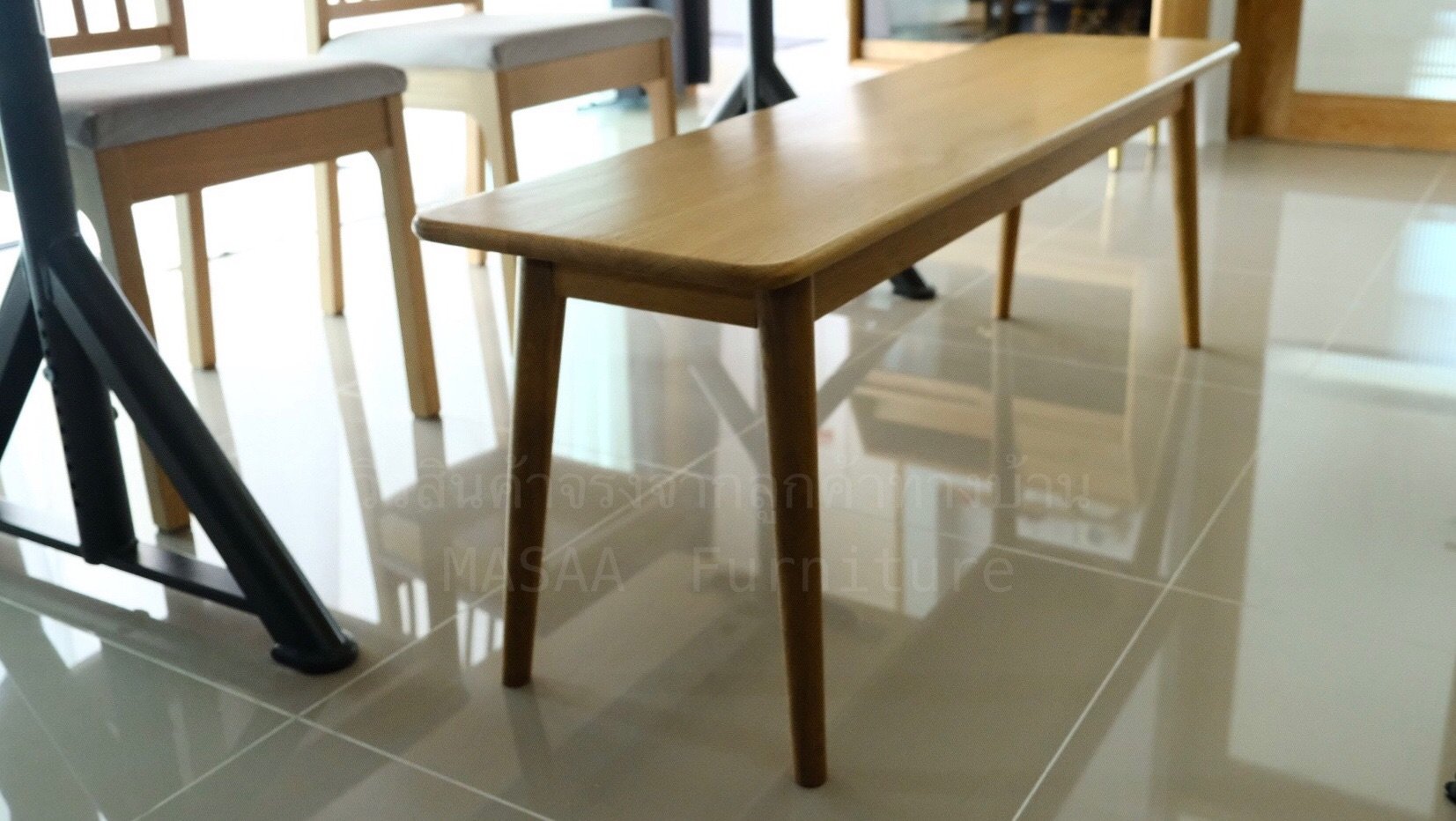 <ม้านั่งยาวไม้โอ๊ค ขาV-Shape LB001>