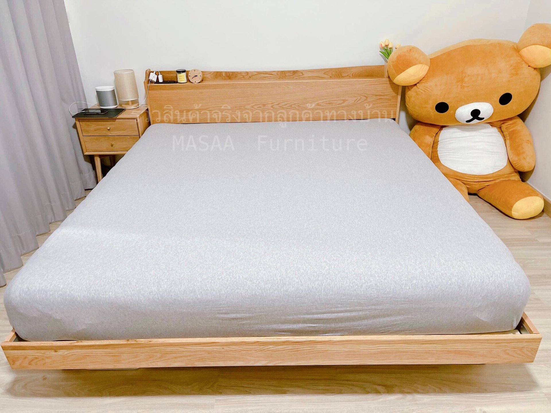 <ชุดเตียงนอนไม้โอ๊ค Peninsula BED002 ขนาด 5 ฟุตพร้อมตู้ข้างเตียง Robot BT003>