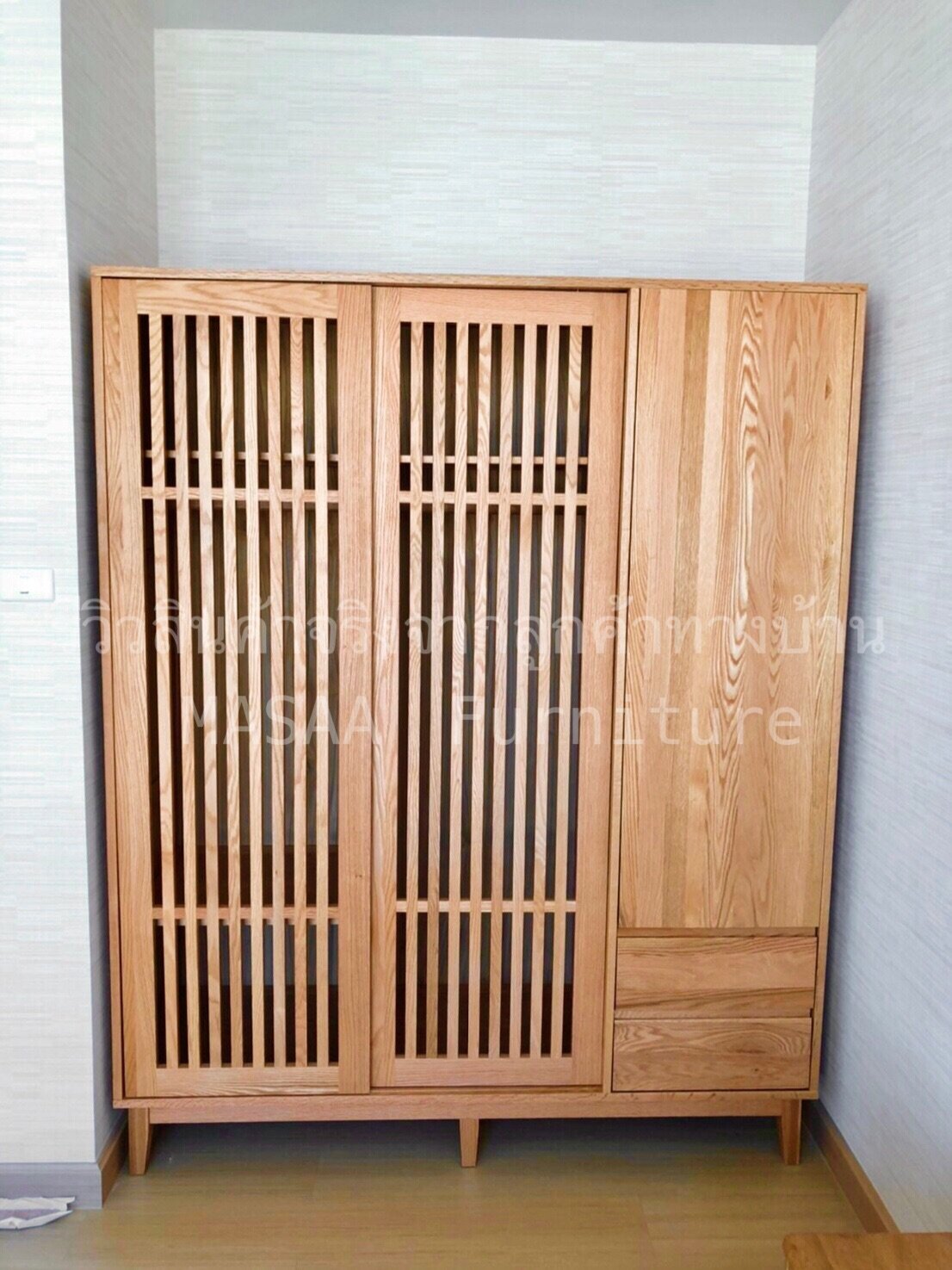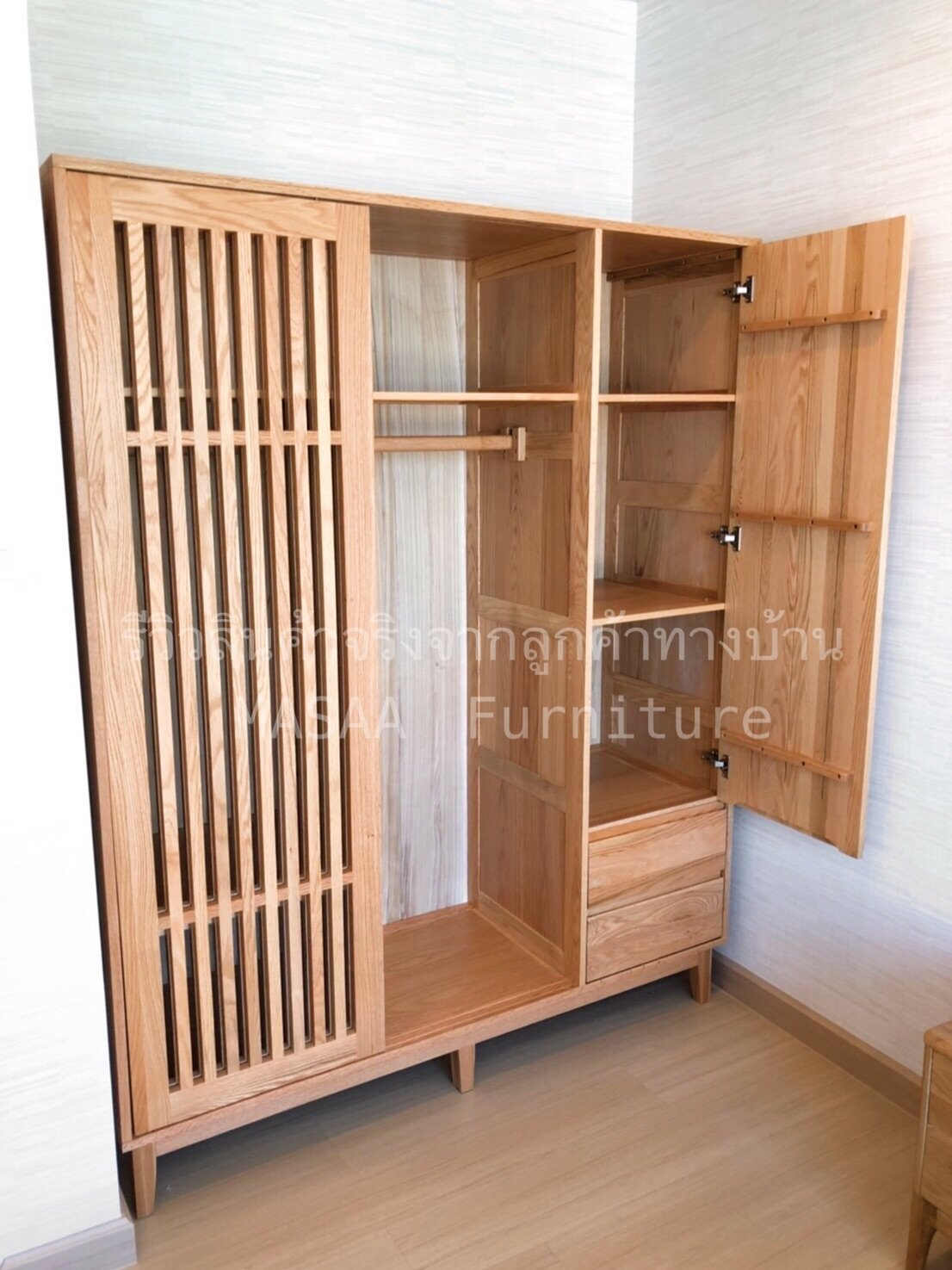 <ตู้เสื้อผ้าไม้โอ๊ค 3 ประตู Homey WRD001-3