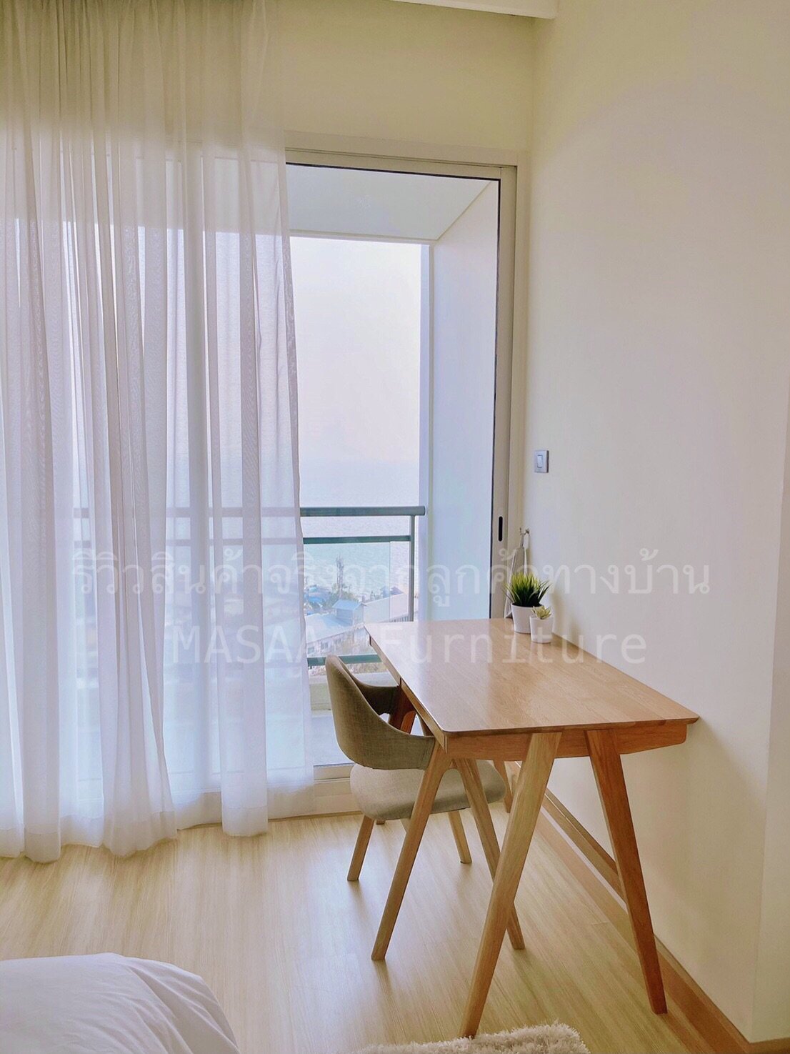 <โต๊ะทำงานไม้โอ๊ค ขาเอียง SD001 ขนาด 1.0 เมตร>