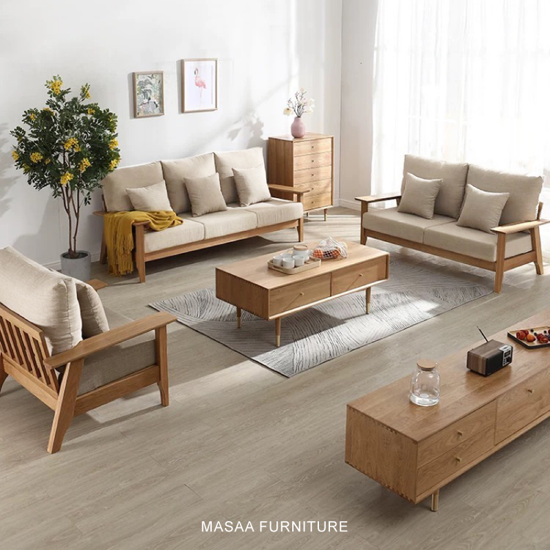 ผลิตจากไม้จริงทั้งหมด แข็งแรง ทนทาน ดูแลรักษาง่าย เลือกสีผ้า โซฟาผ้า PASAYA ได้ตามต้องการ